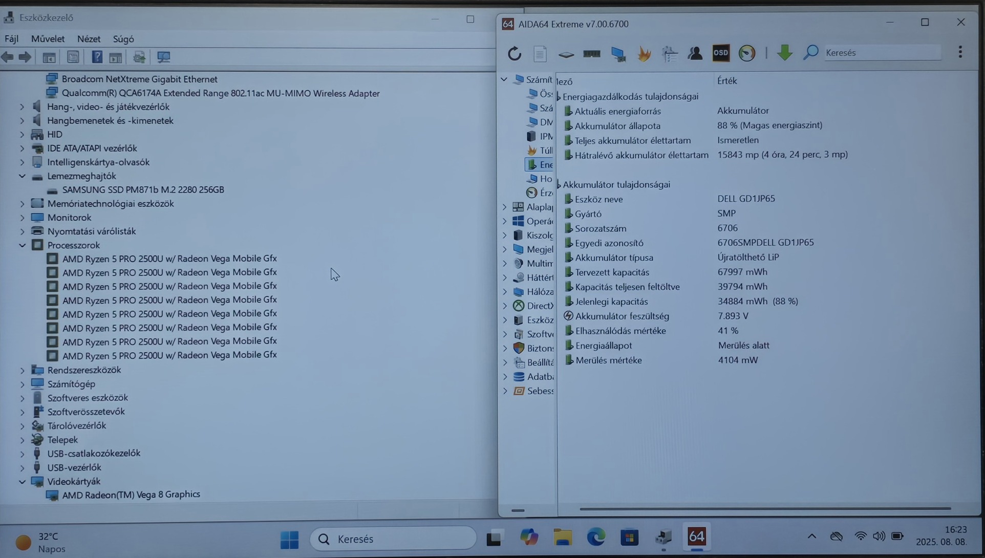 - Videokártya: AMD Radeon Vega 8 Graphics 2GB