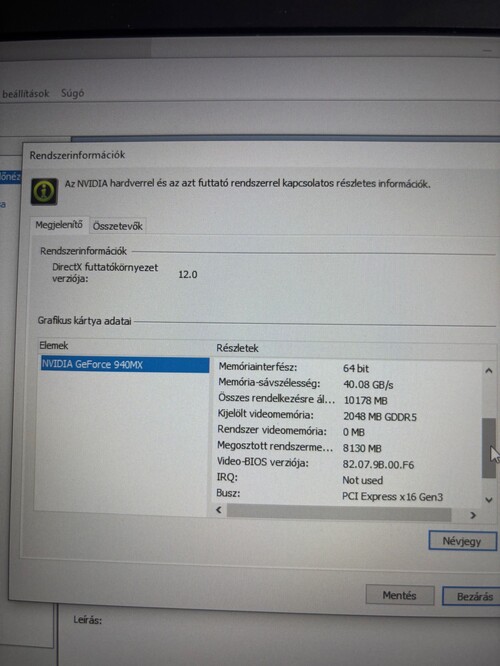 NVIDIA GeForce 940MX dedikált videókártya.