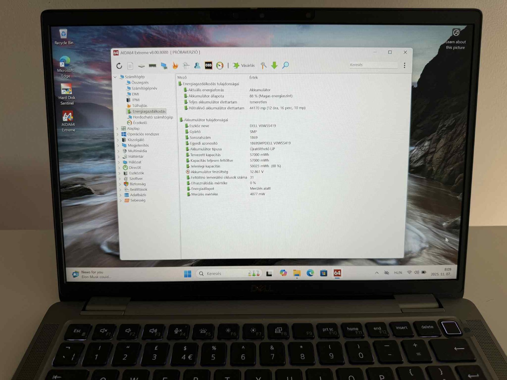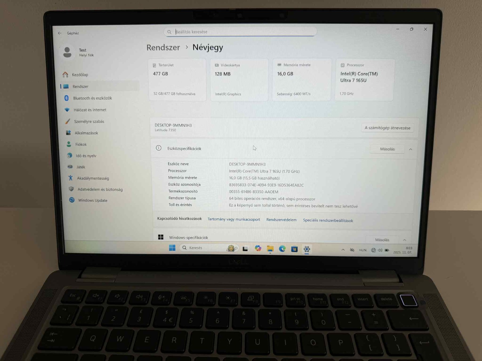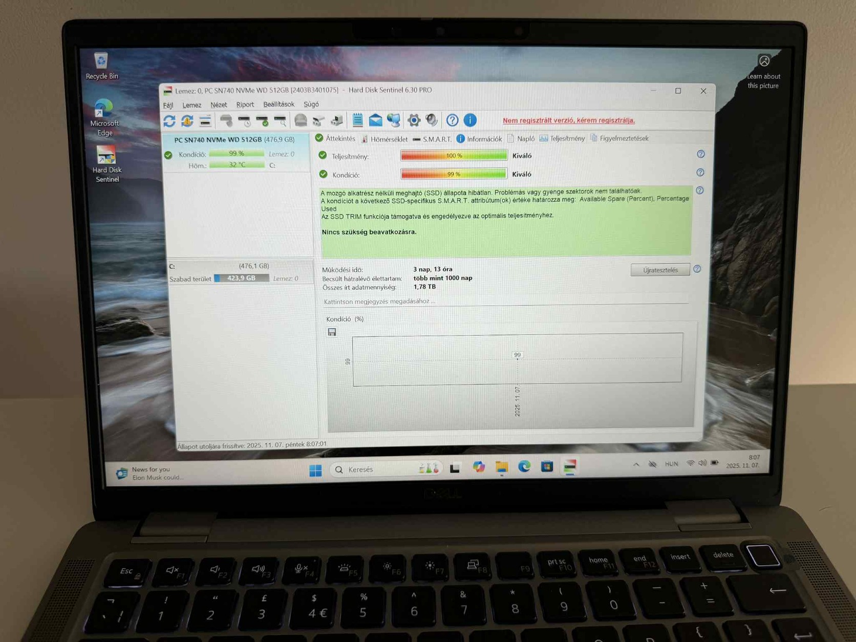 Háttértár mérete 512GB SSD LPDDR5x