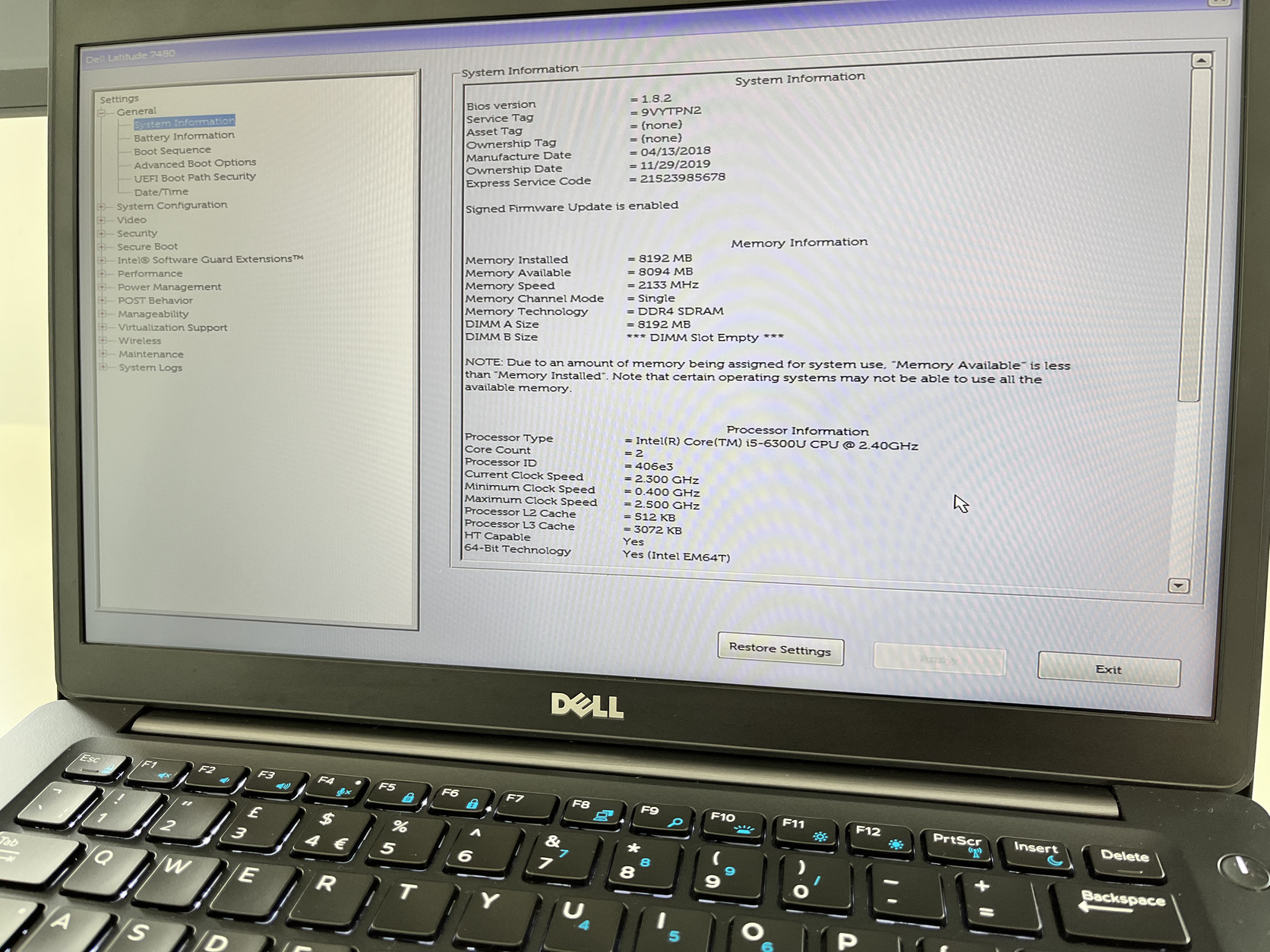RAM: 8GB DDR4