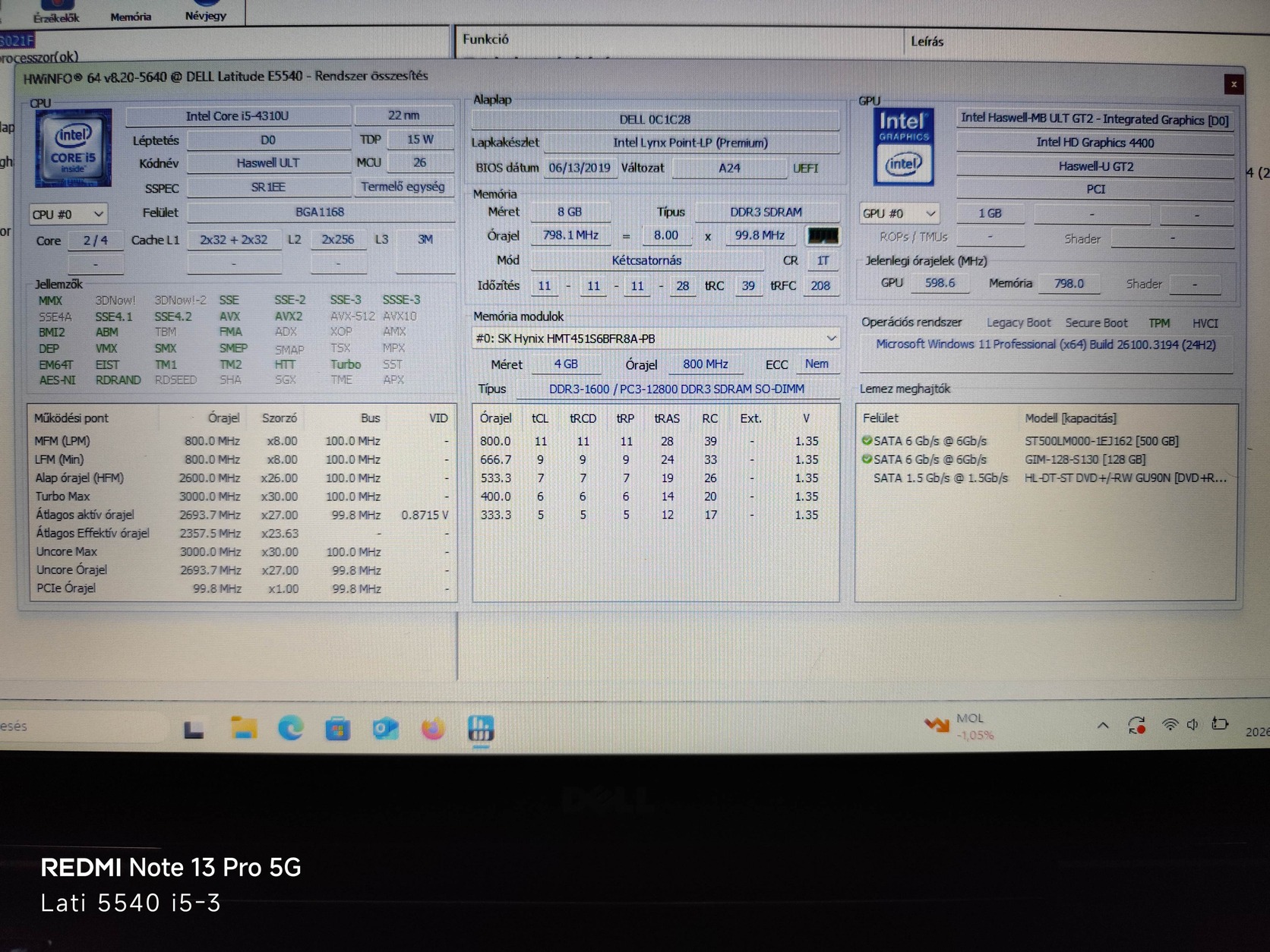 Intel Core i5 i5-4310U processzor, 8GB DDR3 Ram, 128 GB SSD + üres Msata aljazat (bővíthető tárhely) CD/DVD/RW