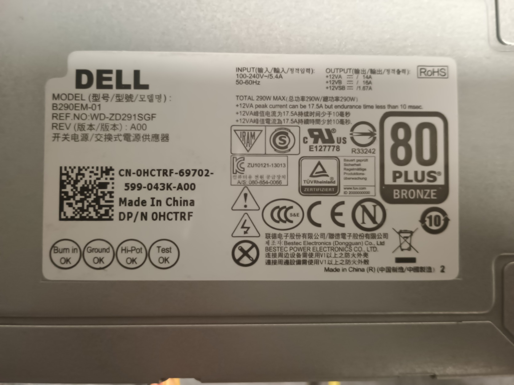 Dell Optiplex 3020 gyári táp 290W