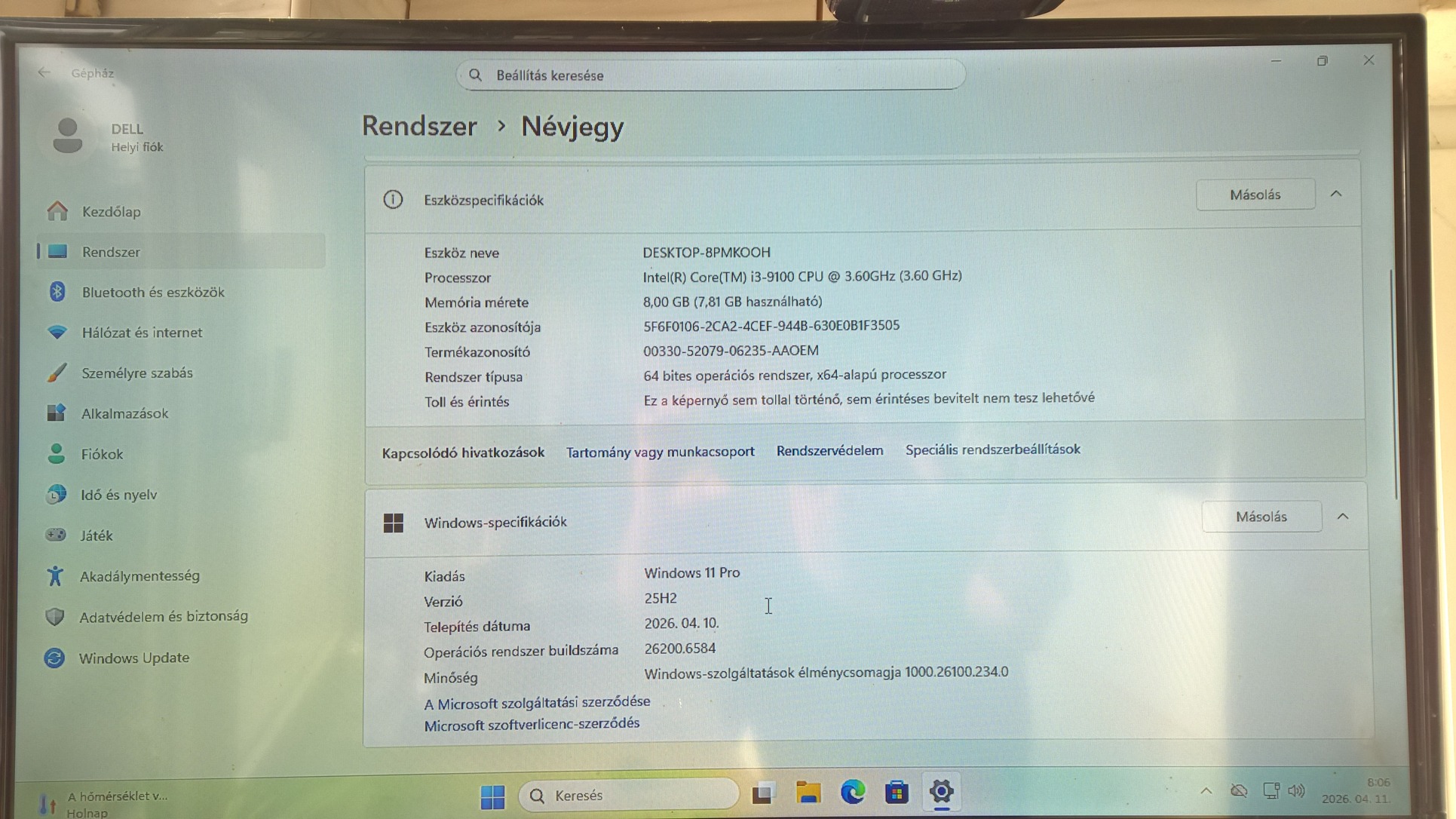 Legális Windows 11 Pro telepítve