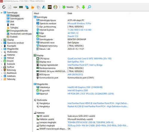 • Háttértár: 500GB HDD (SATA III, 7200 RPM),