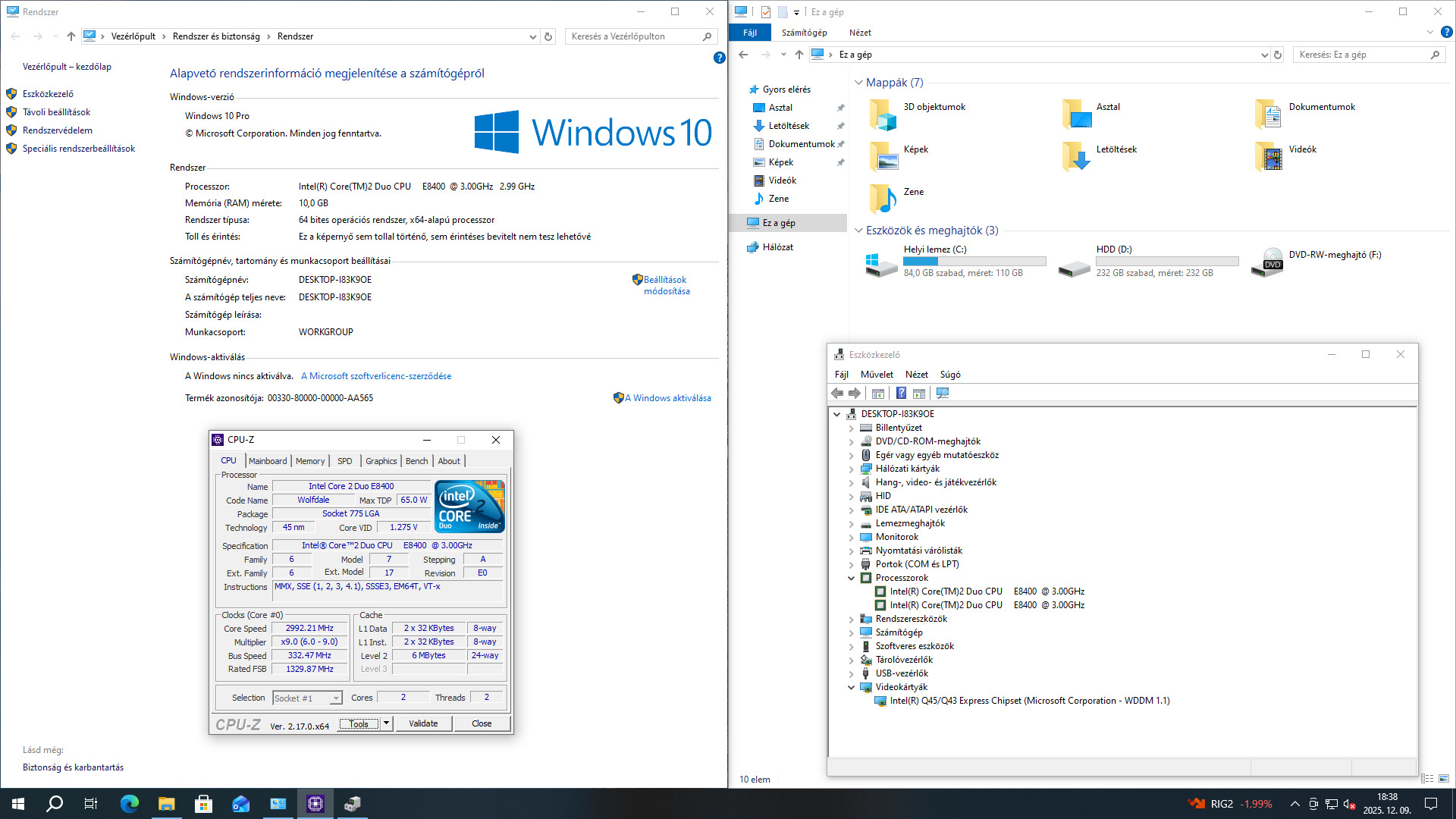 - Processzor : Intel Core 2 Duo E8400