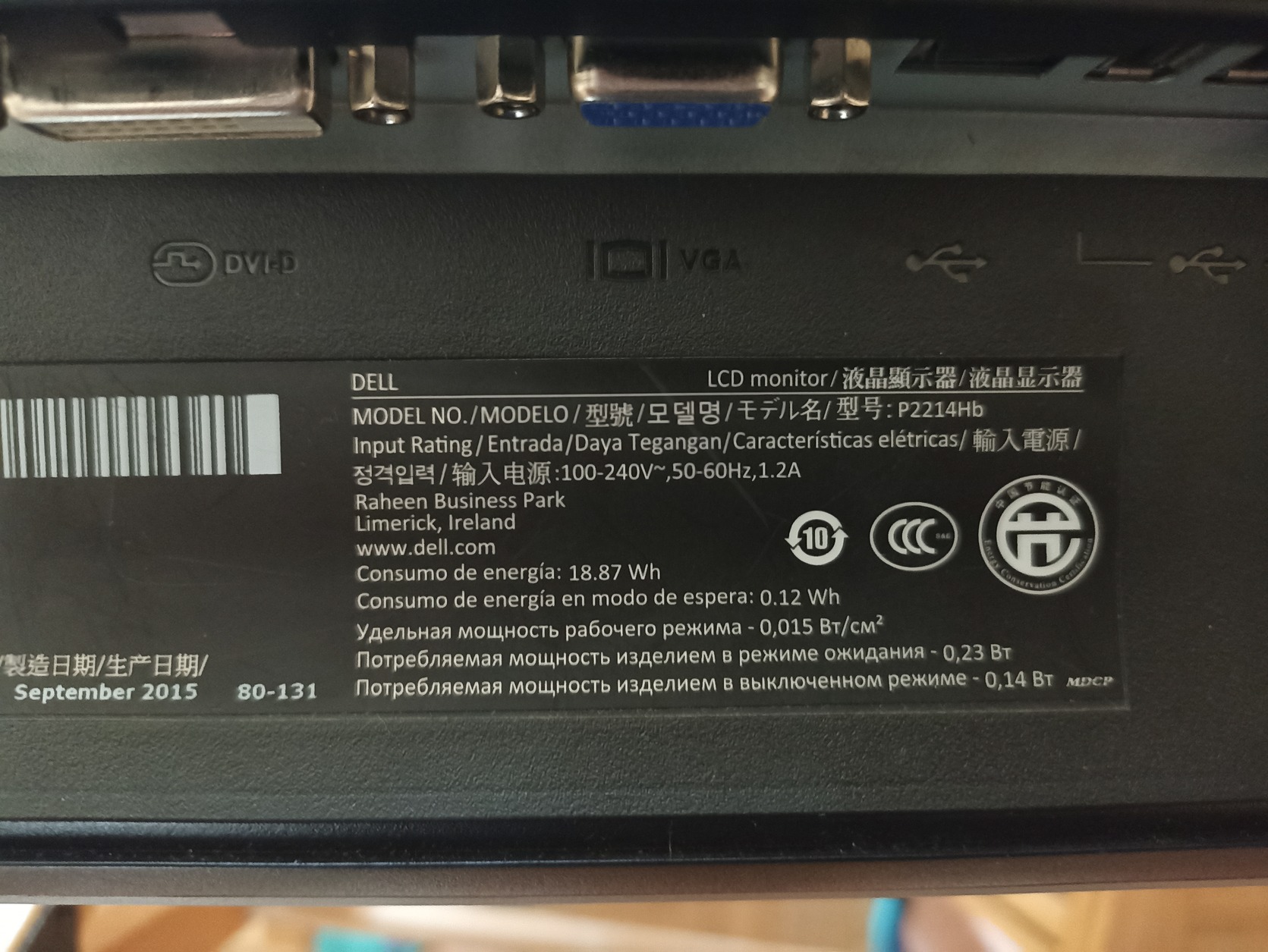 Dell P2214H Monitor 21,5" 1080p