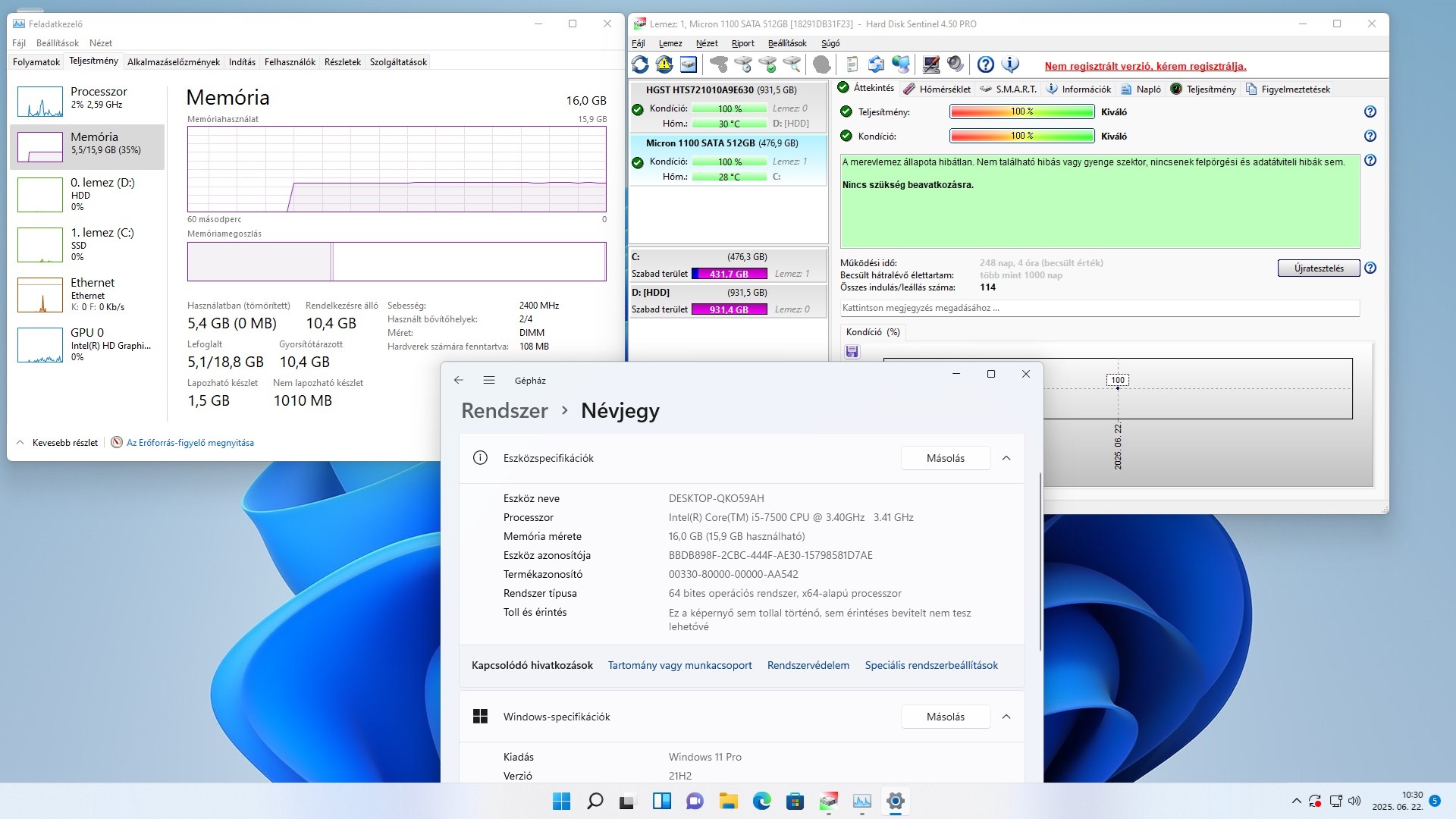 Tárhely: 512GB SSD, 1TB HDD
