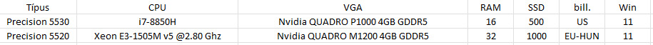 Építész napi használatából Dell Precision 5530 WorkStation kategóriájú laptopok eladók. Kettő darab van (A és B).