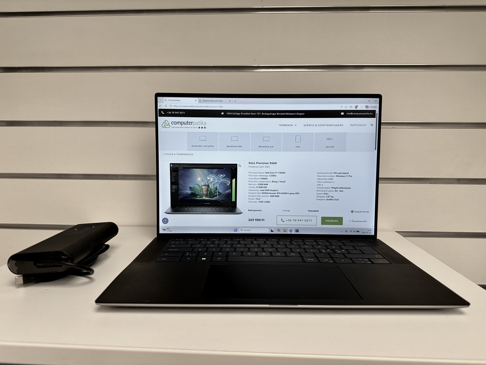 DeLL Precision 5560 Munkaállomás Intel Core i7-11850H/32RAM/512SSD/RTXA2000/FULL HD IPS kijelző