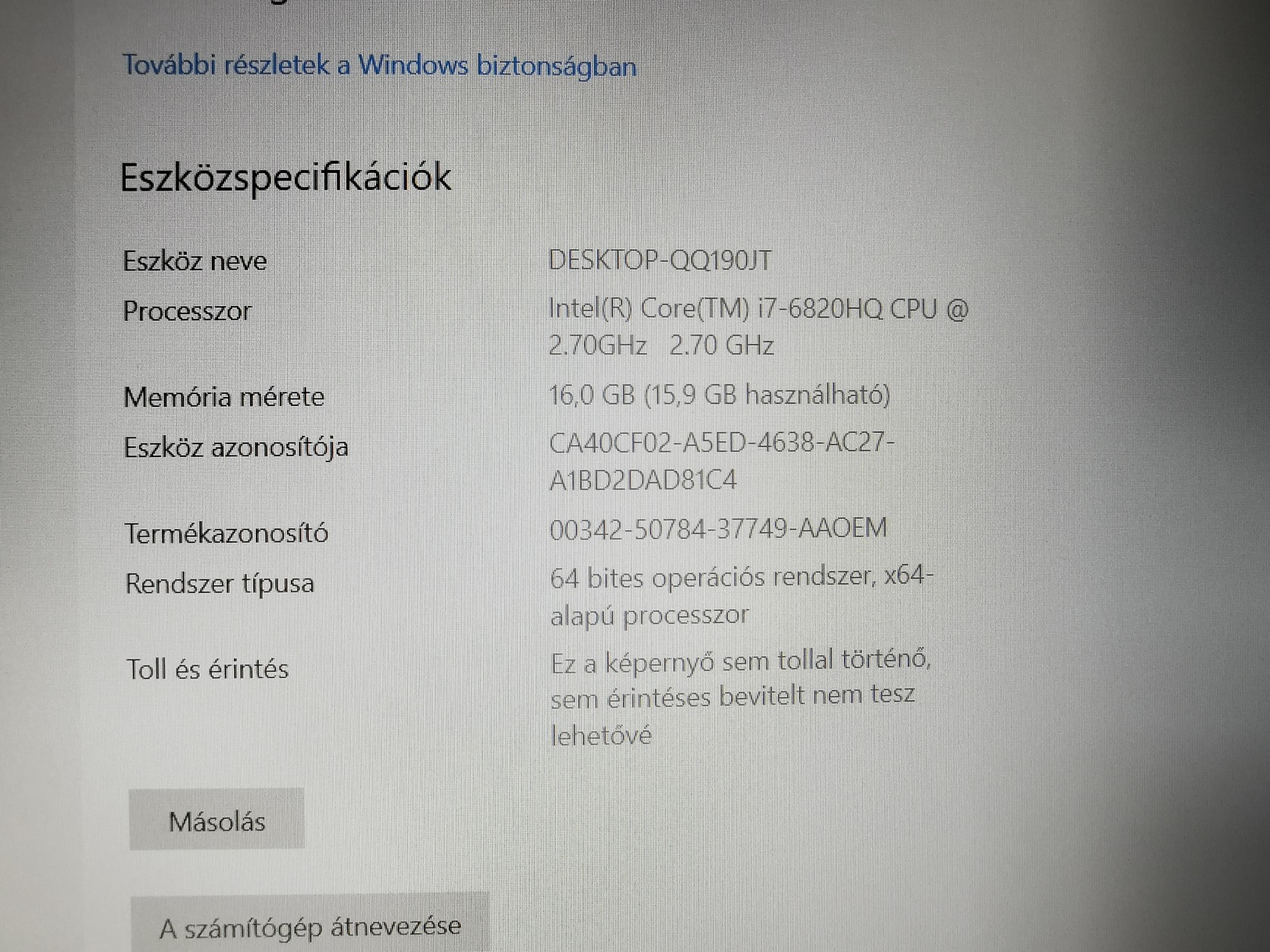 - Processzor: intel Xeon E3 -1545m 2.9Ghz (erősebb mint egy i7 6920)