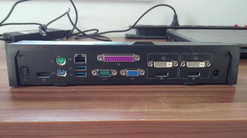 Adok hozzá egy kensington zárat (csak egy kulcs van hozzá) és egy k09a típusú asztali dokkolót, port replikátort. Ezen van még 5db USB port (ebből 2db 3.0), 2b DVI és 2db Display port. 1db VGA, 1 audio ki- és egy bemenet. Párhuzamos (nyomtató) és soros portok. 2db PS2 (billentyűzet és egér). 1db RJ45 (hálókábel).