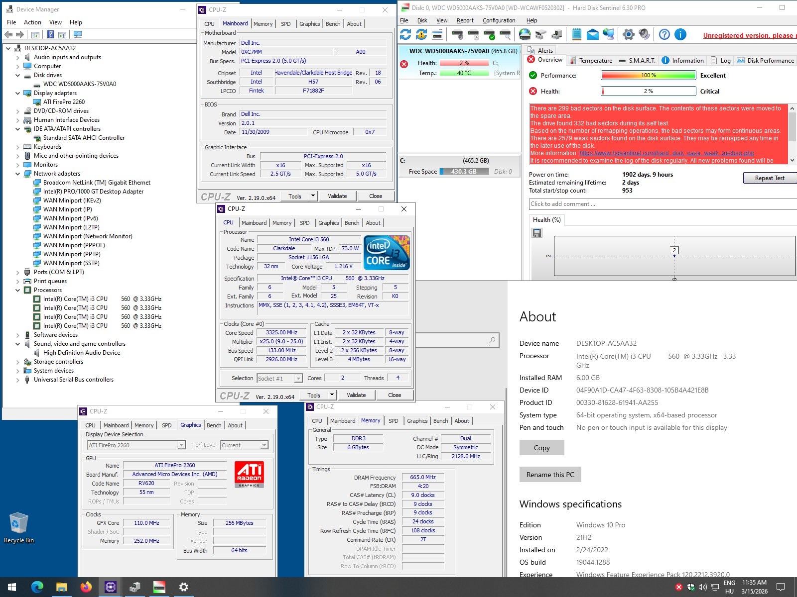 Intel i3-560 CPU (3,33GHz, 4 szál / 2 mag + HD Graphics)