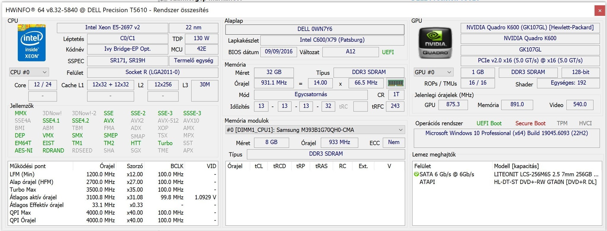 Dell Precision T5610 CPU: 2xIntel Xeon E5-2697 v2 2.70GHz RAM: 32GB DDR3, 1600MHz GPU: nVidia Quad