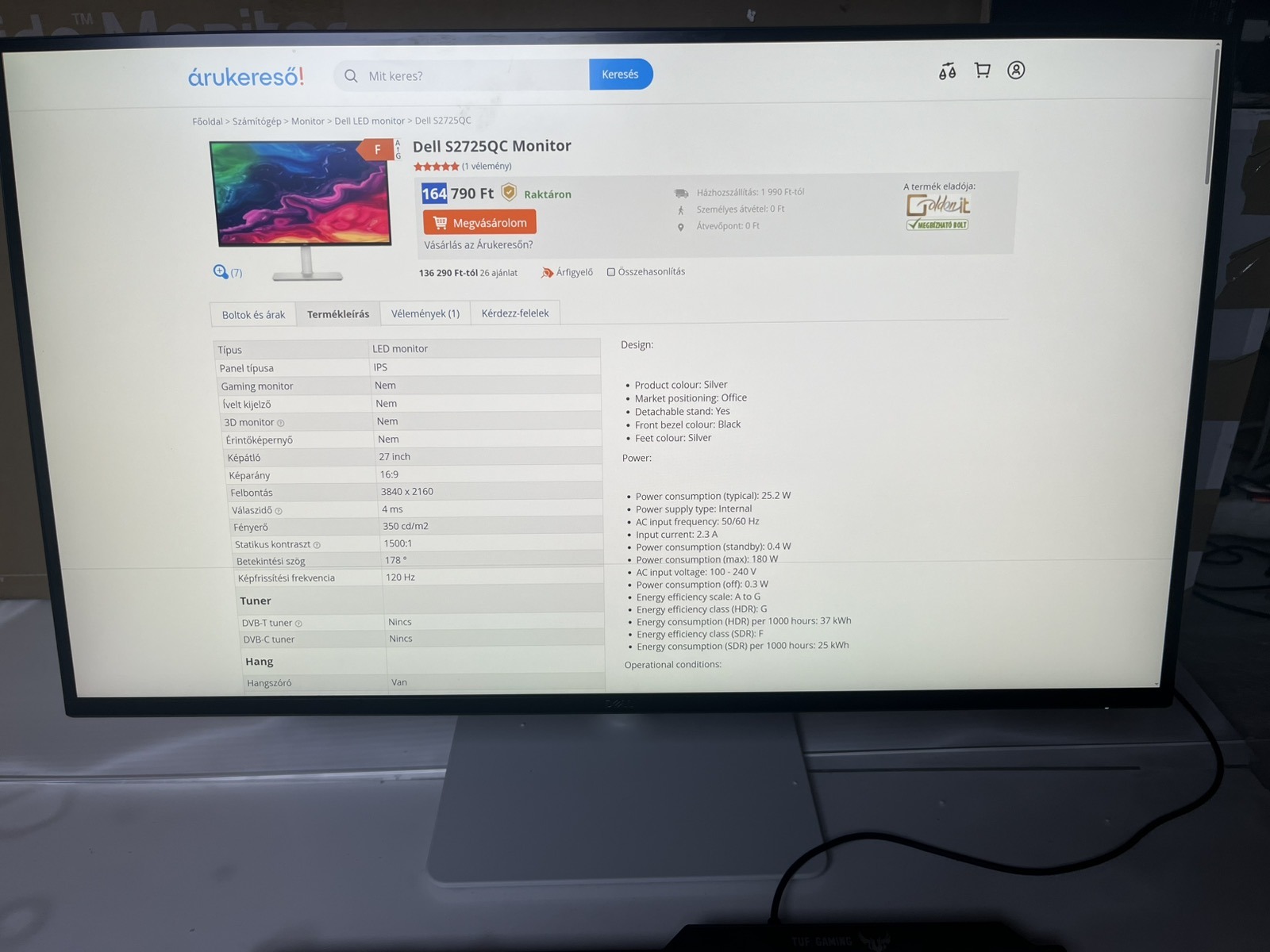 Dell S2725QC Monitor 4K IPS 120Hz