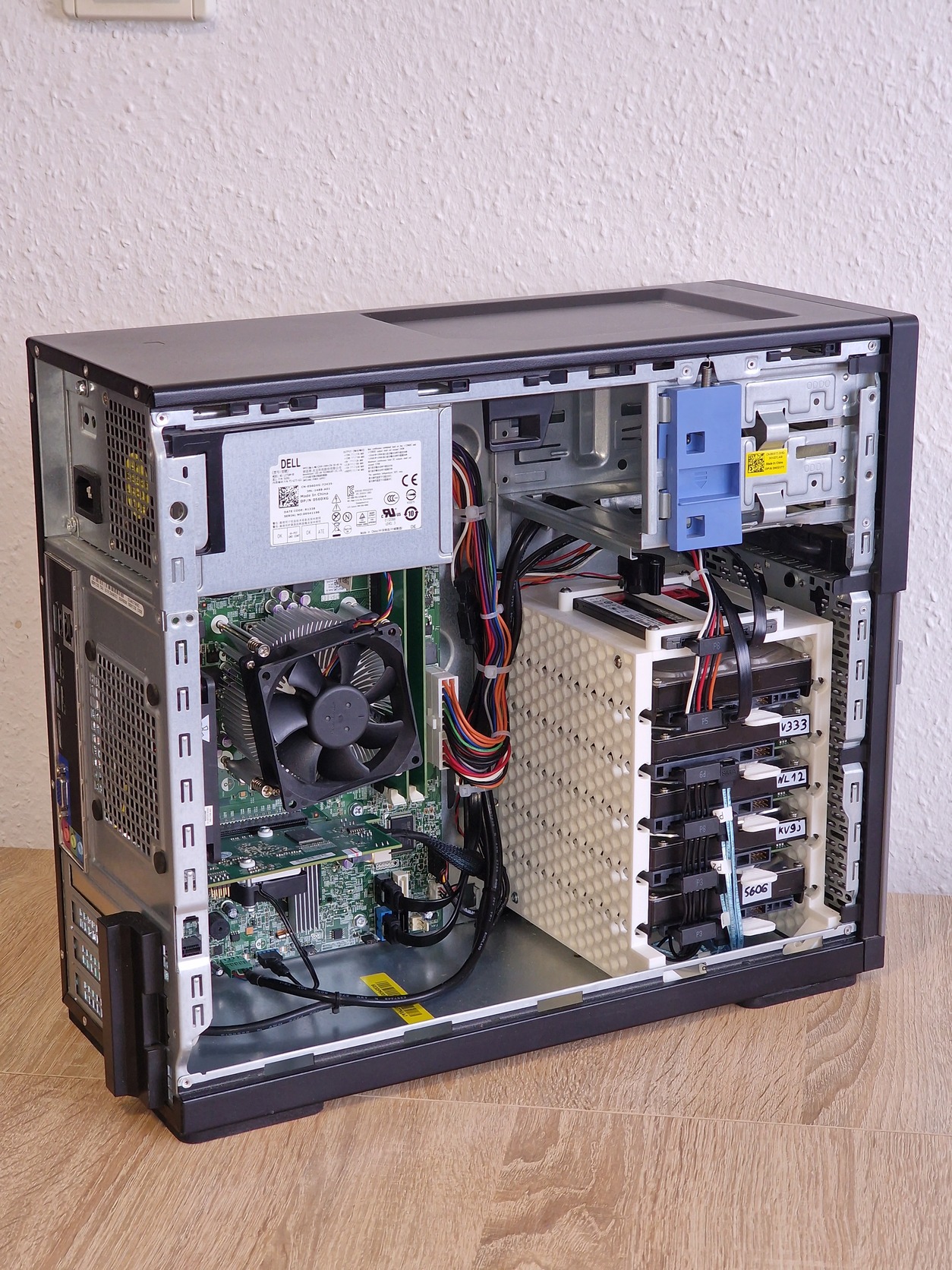 Saját használatra építettem, de a projekt végül nem valósult meg amihez a tárhely kellett volna. A gép alapját egy Optiplex 3010 képezi. Készült bele egy 3D nyomtatott HDD tartó amely 5 darab 3,5-ös és 1 darab 2,5-ös befogadására képes.