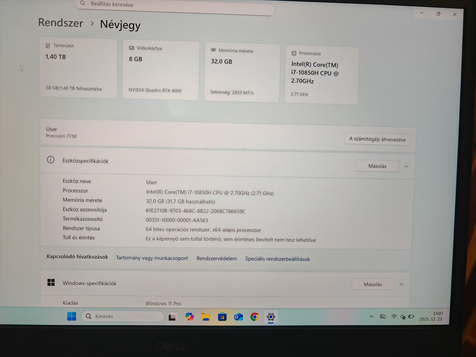 Dell Precision 7750 erőmű eladó, tervezére játékra is, erős vgaval, nagyon szép kijelzővel, szép állapotban