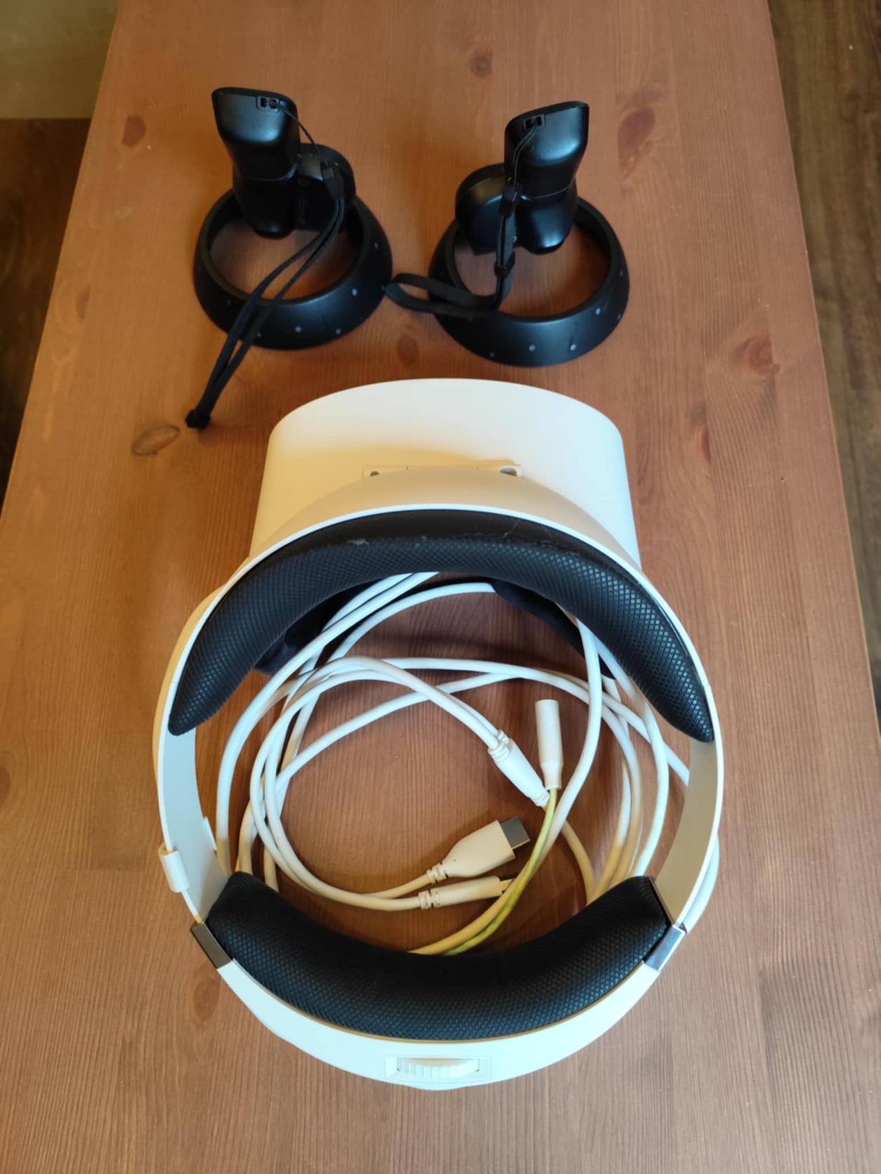 A headset és a kontrollerek hibátlanul működnek, állapotuk jó, külső megjelenésük szinte hibátlan. Használatból eredő kisebb karcok és kopások előfordulhatnak, de a működést nem befolyásolják.