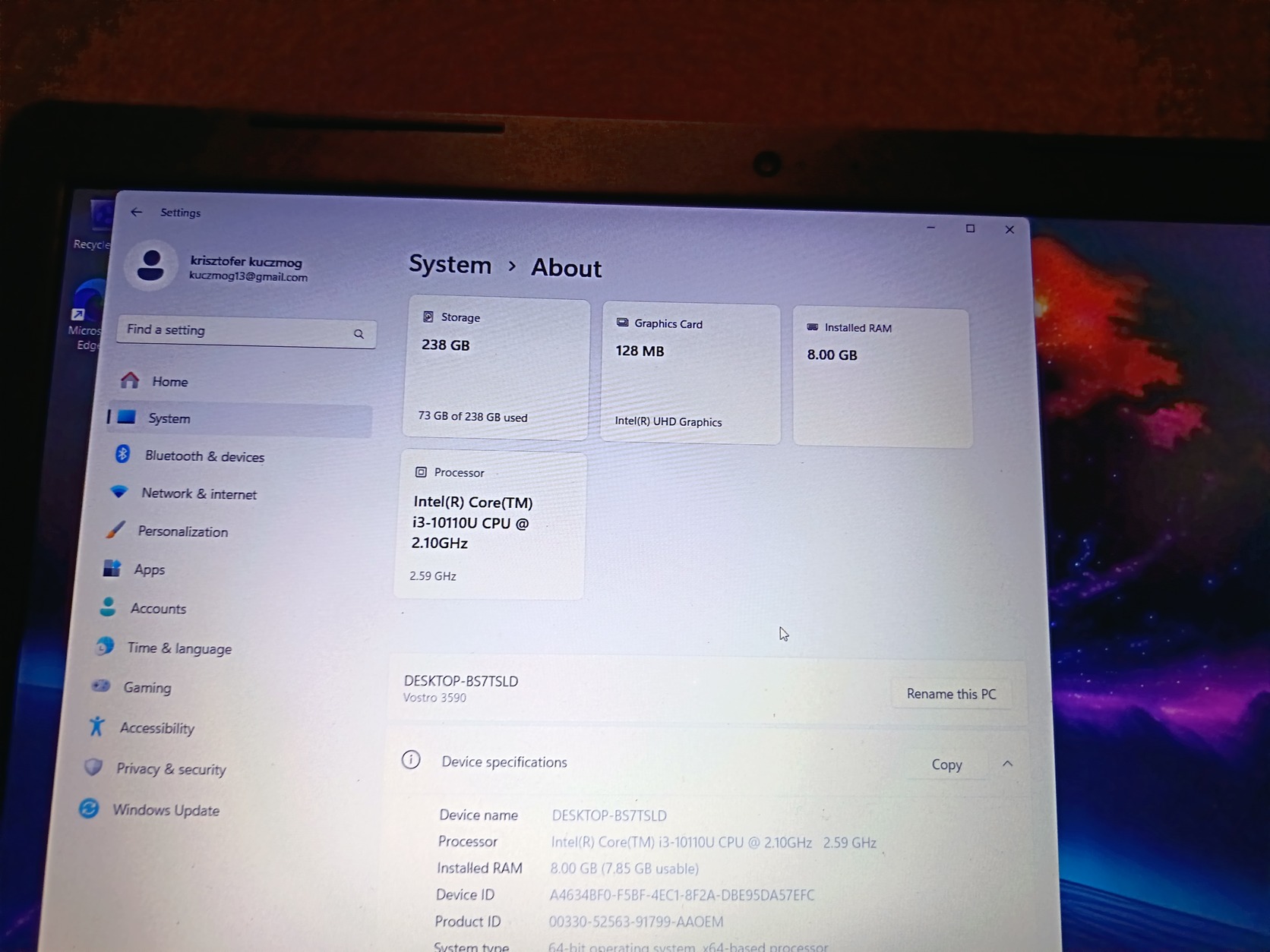 Dell Vostro 15 I3 10.gen
