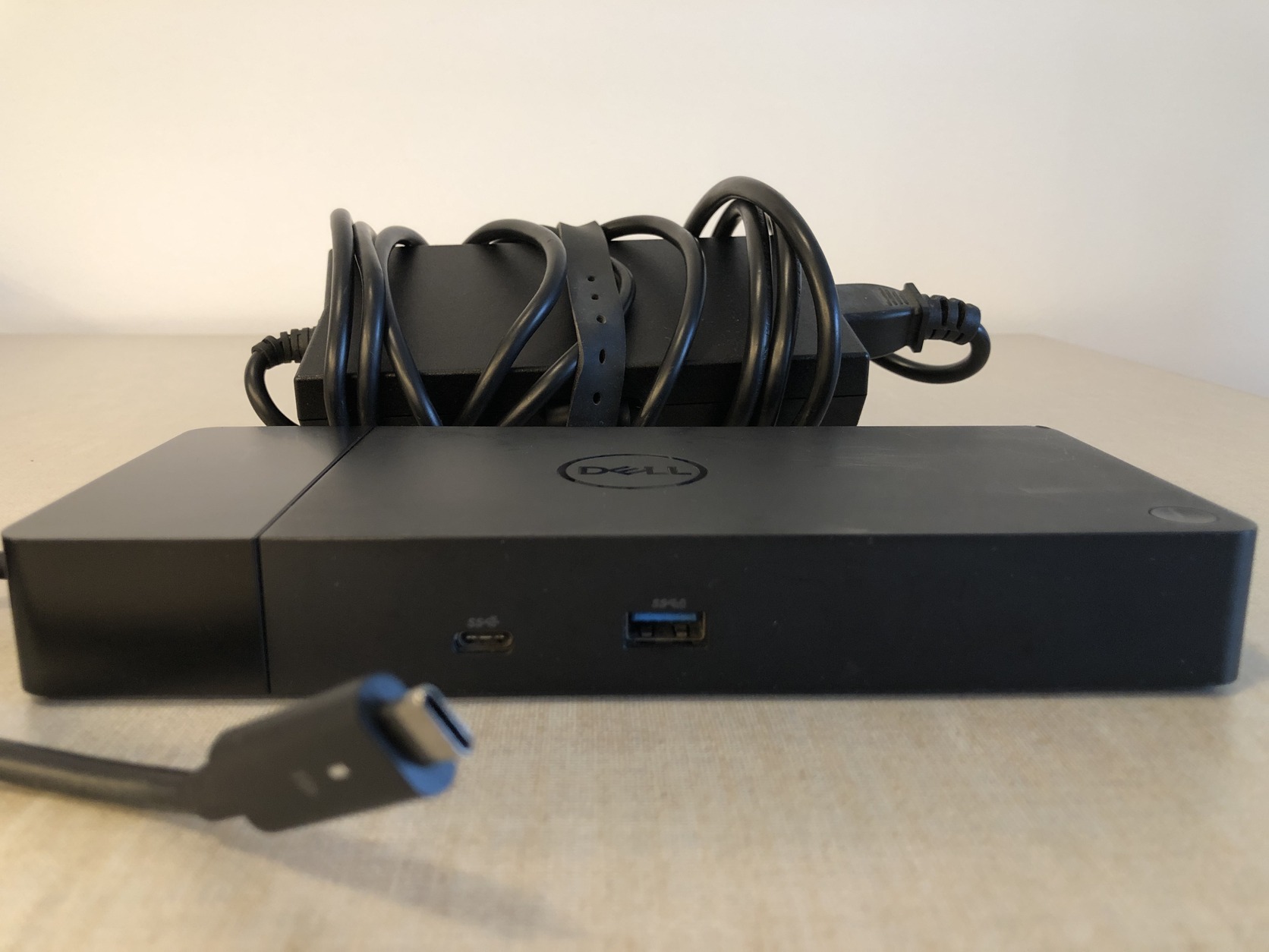 Hibátlan állapotban eladó, a képen látható tartozékokkal, használt Dell WD19 USB-C dokkoló, 130 wattos hálózati adapterrel.