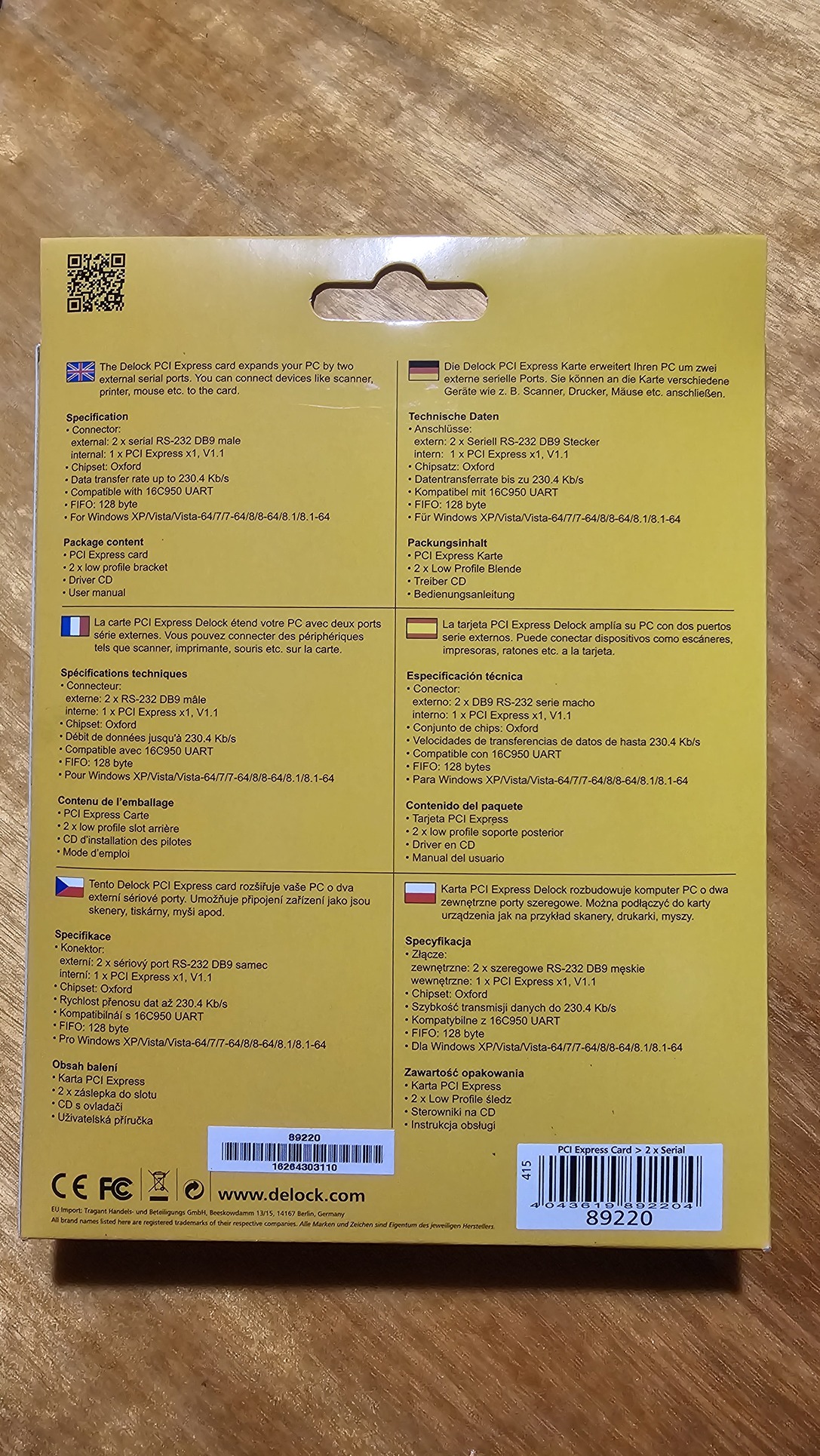 A Delock PCI Express kártya két külső soros RS-232 porttal bővíti a számítógépet. Különböző eszközök, úgy mint szkenner, protokoll átalakító vagy IoT elemek, kapcsolhatók ehhez a kártyához.
