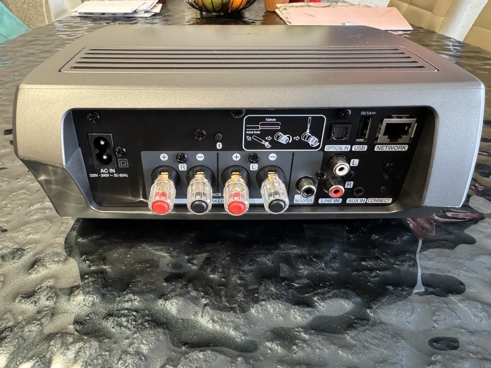 A készülék 2 x 70 W teljesítményt ad le 8 ohmon, illetve 2 x 100 W-ot 6 ohmon, Class D erősítéssel.