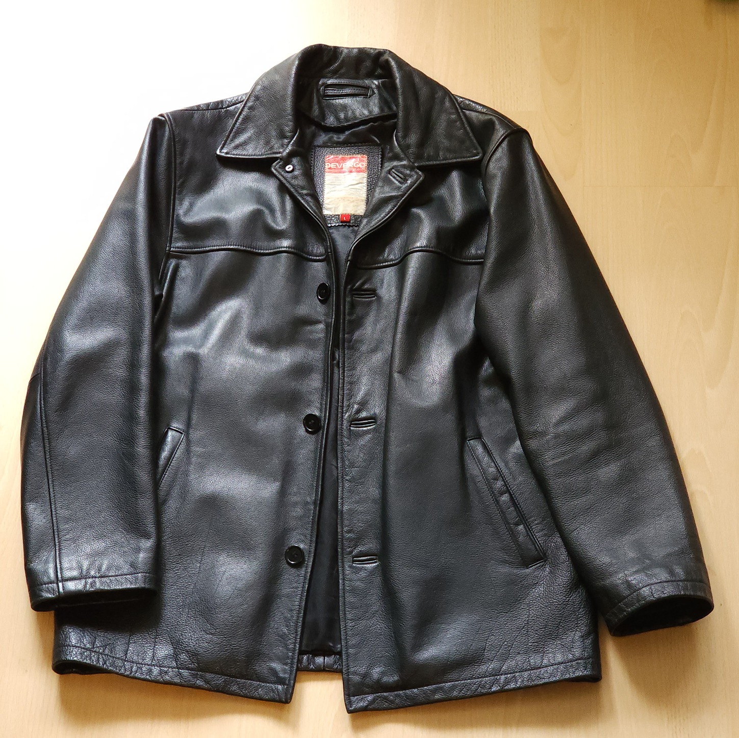 Bőrdzseki eladó, Devergo márkájú, marhabőrből készült. L-es méret, kb. 180-185 centis emberre való. Három belső zsebe van. Steppelt bélése kicipzározható. Szinte egyáltalán nincs rajta kopás.