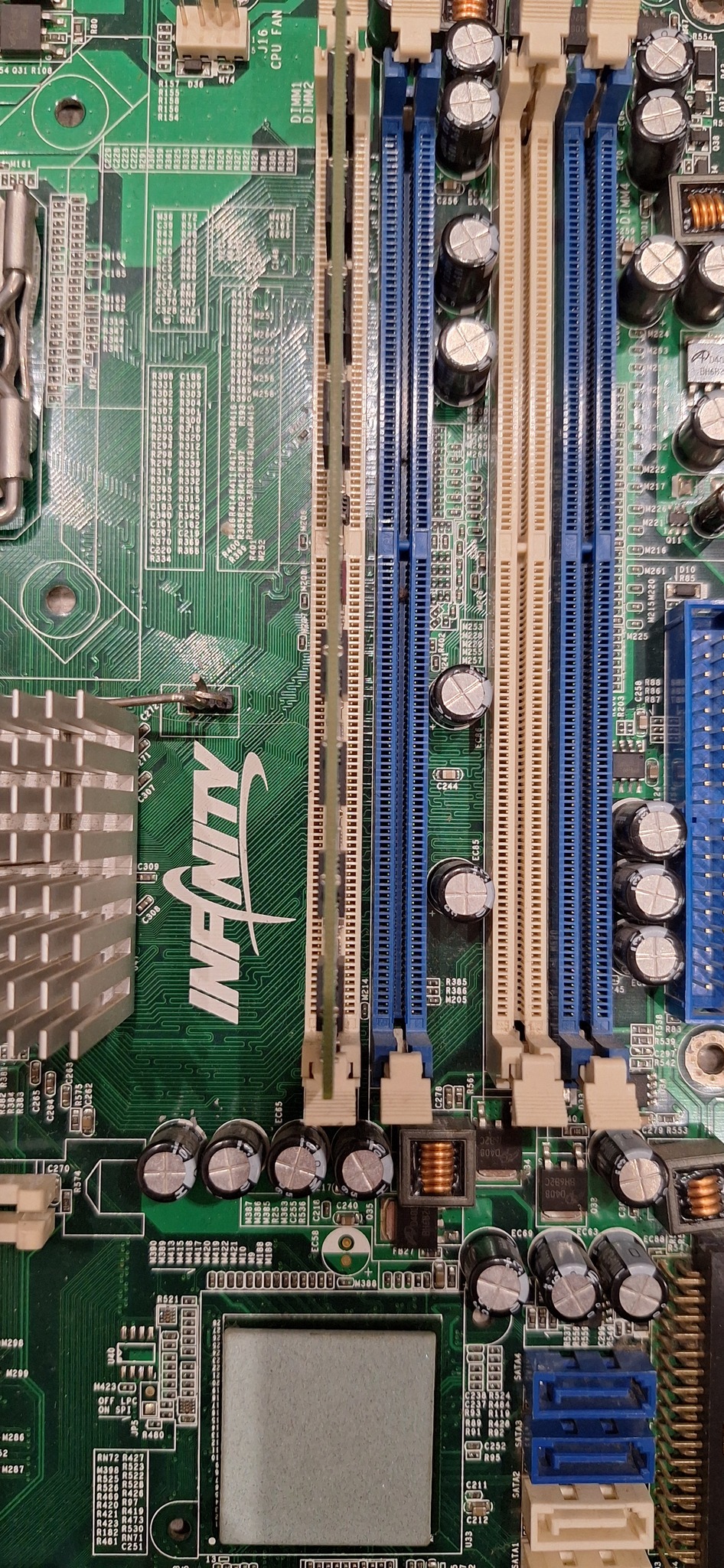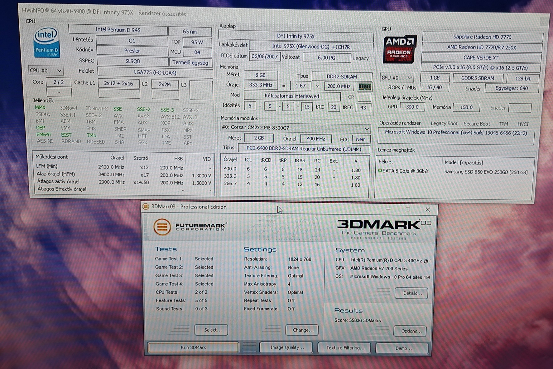 Eladás után visszahozták, mert nem működik. Egy Pentium 21xx cpu volt benne, hát azzal nem is megy, lévén nincs a támogatott processzorok listáján. Viszont egy Pentium D945-tel megy szépen (Core 2 Q6600-at is kezeli hivatalosan!) tesztek is lefutottak. A memóriákat is full kimaxolva a lapot teszteltem, 8GB mindegyik slot működik.