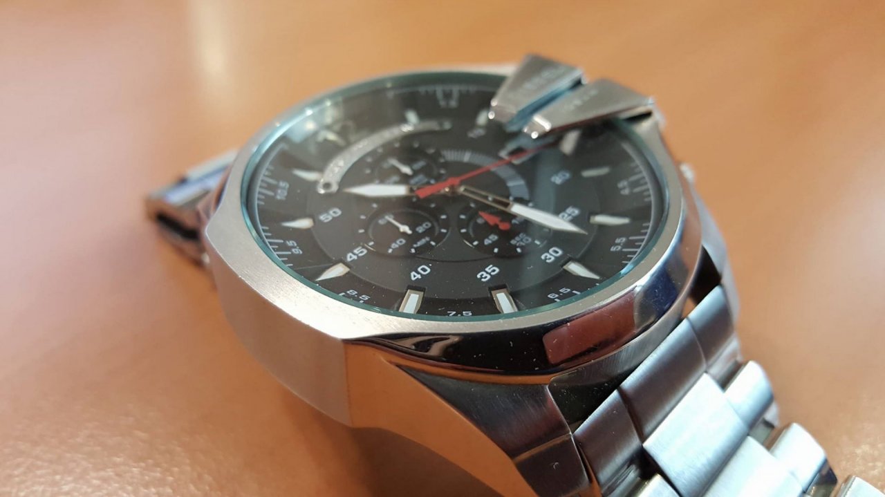 Impozáns látványt nyújtó extravagáns külső jellemzi az órát, nem csak a mérete miatt. Amúgy nem kis darab!!!