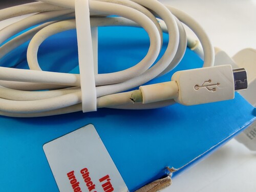 Kopottas külsejű, az akku vadonatúj, utángyártott. A nedvesség-indikátor elszíneződött, amikor alkoholos tisztítószerrel áttörölgettem (lásd a 4. képet), a készülék nem volt beázva! A töltőkábel enyhén meg van törve, de használható.
