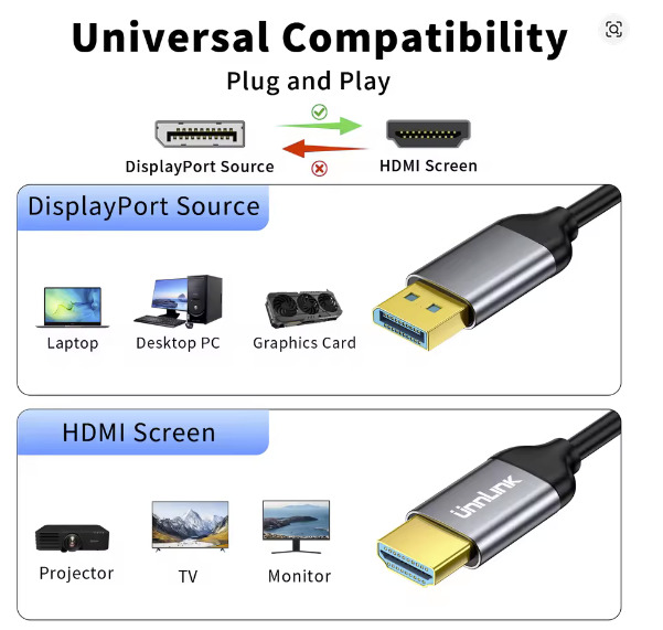 Kizárólag dp to hdmi irányba működik.