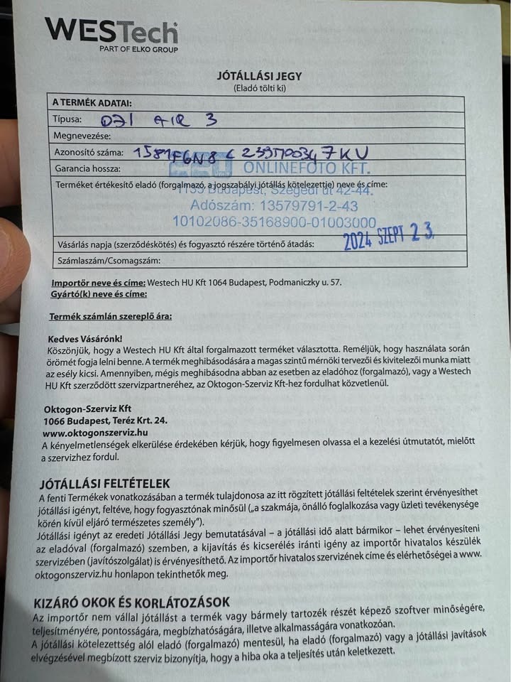 DJI Air 3 pack garanciális 2027.09.23