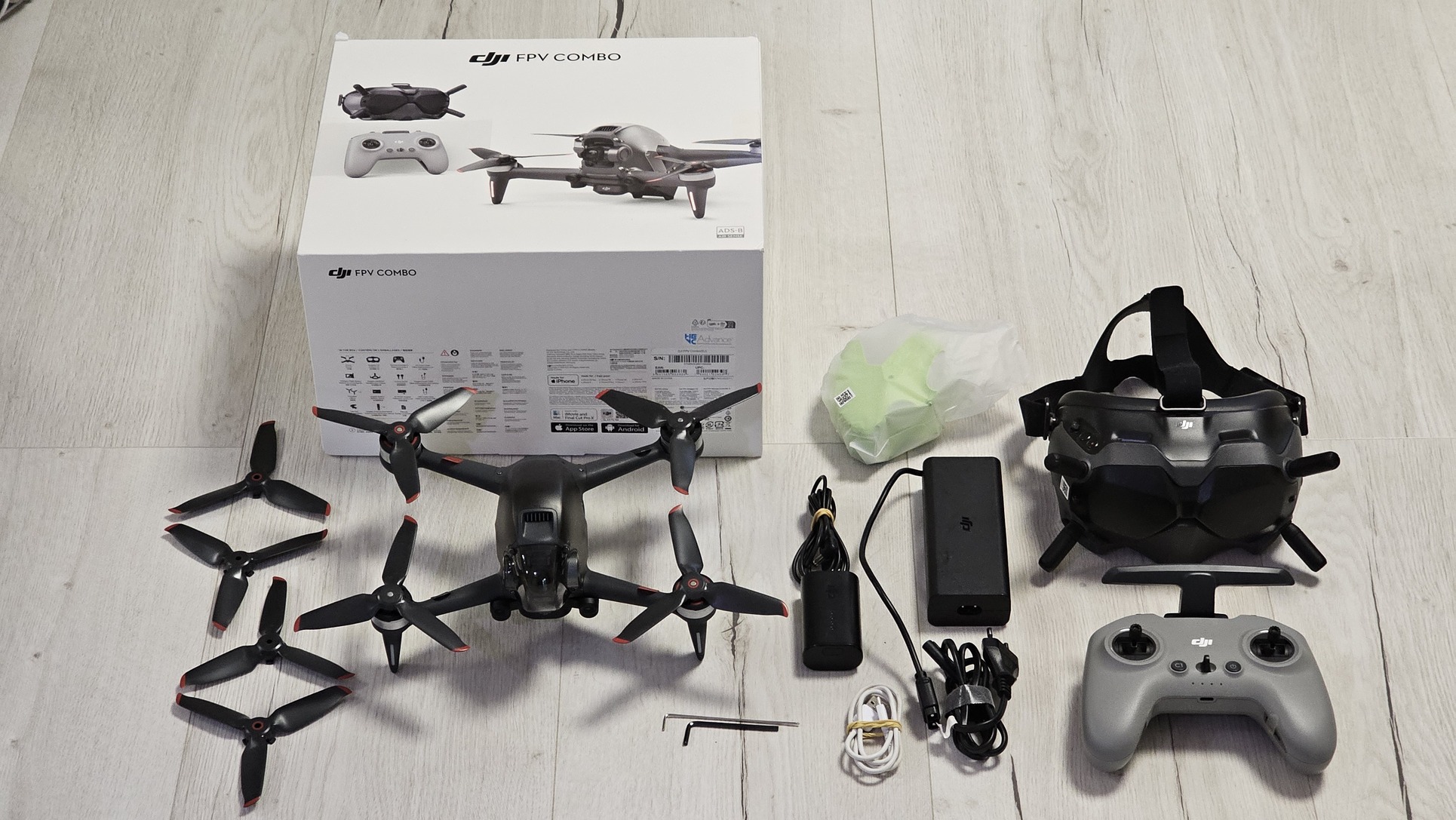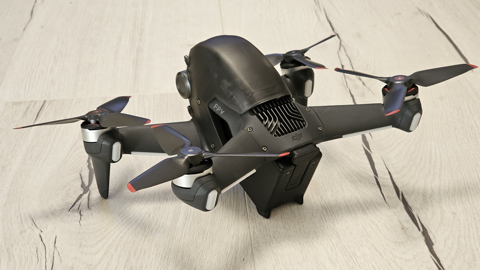 - DJI FPV drón (fekete és zöld felső burkolattal)