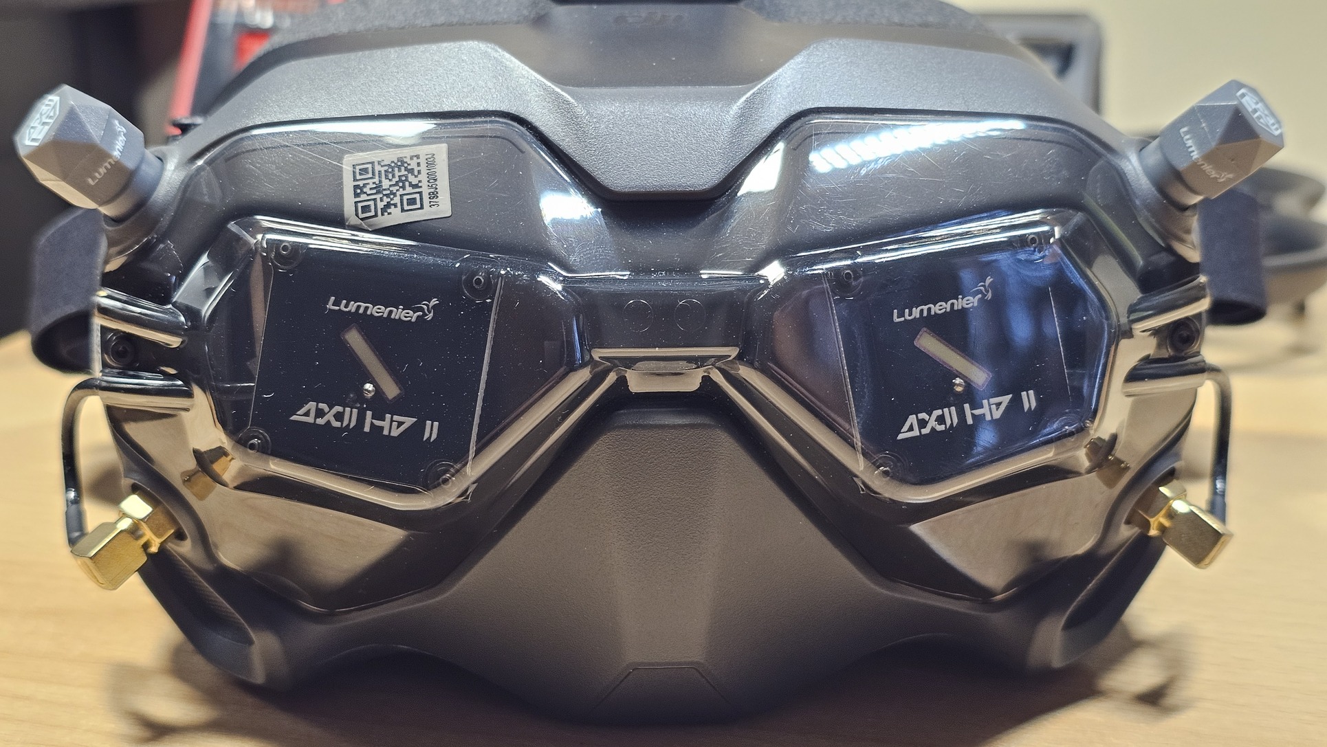 2x IPS kijelző, állítható szemtávolság, cserélhető akkumulátor. Extra puha arcpárnázás. Lumenier AXII HD2 tuning antennák (patch és stubby-pár), amivel a hatótávolság és a jel stabilitása lényegesen megnő.