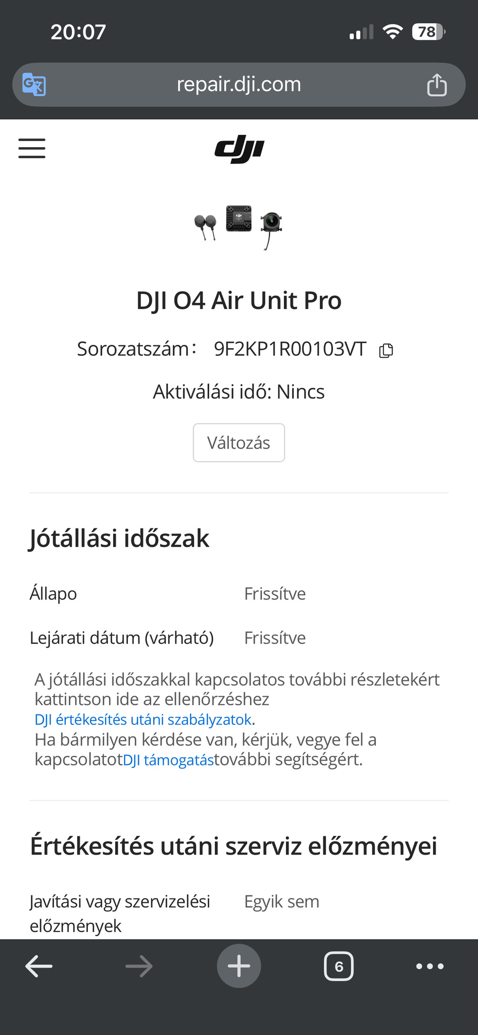 -O4 Pro teljes air unit szett kamera, vtx, antennák és 6 pines kábel, dobozban gyári leírással