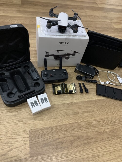 Eladó DJI Spark drón, képen látható állapotban és látható tartozékaival.