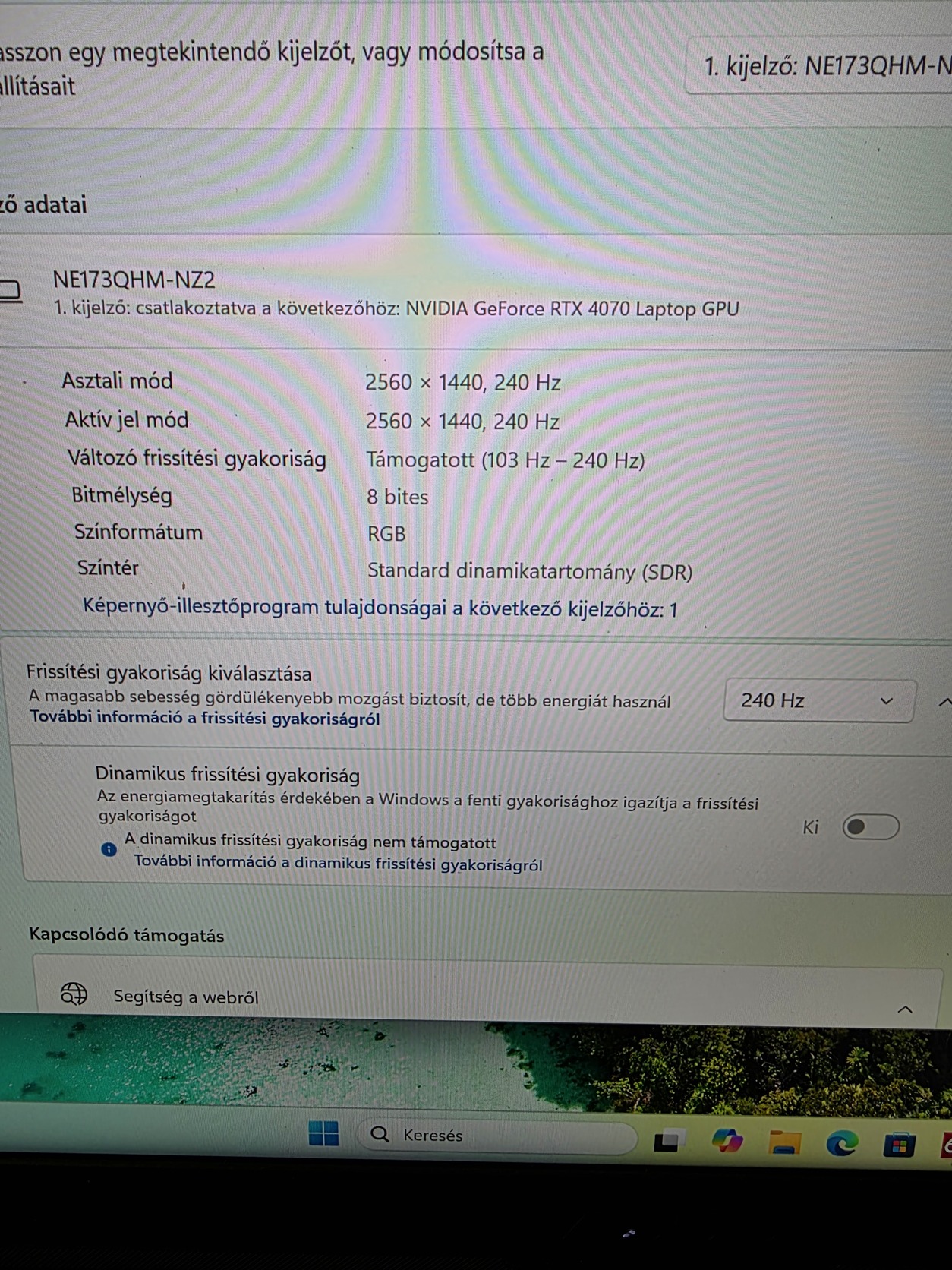 📺 Kijelző: 17,3″ (2560×1440), 240 Hz IPS