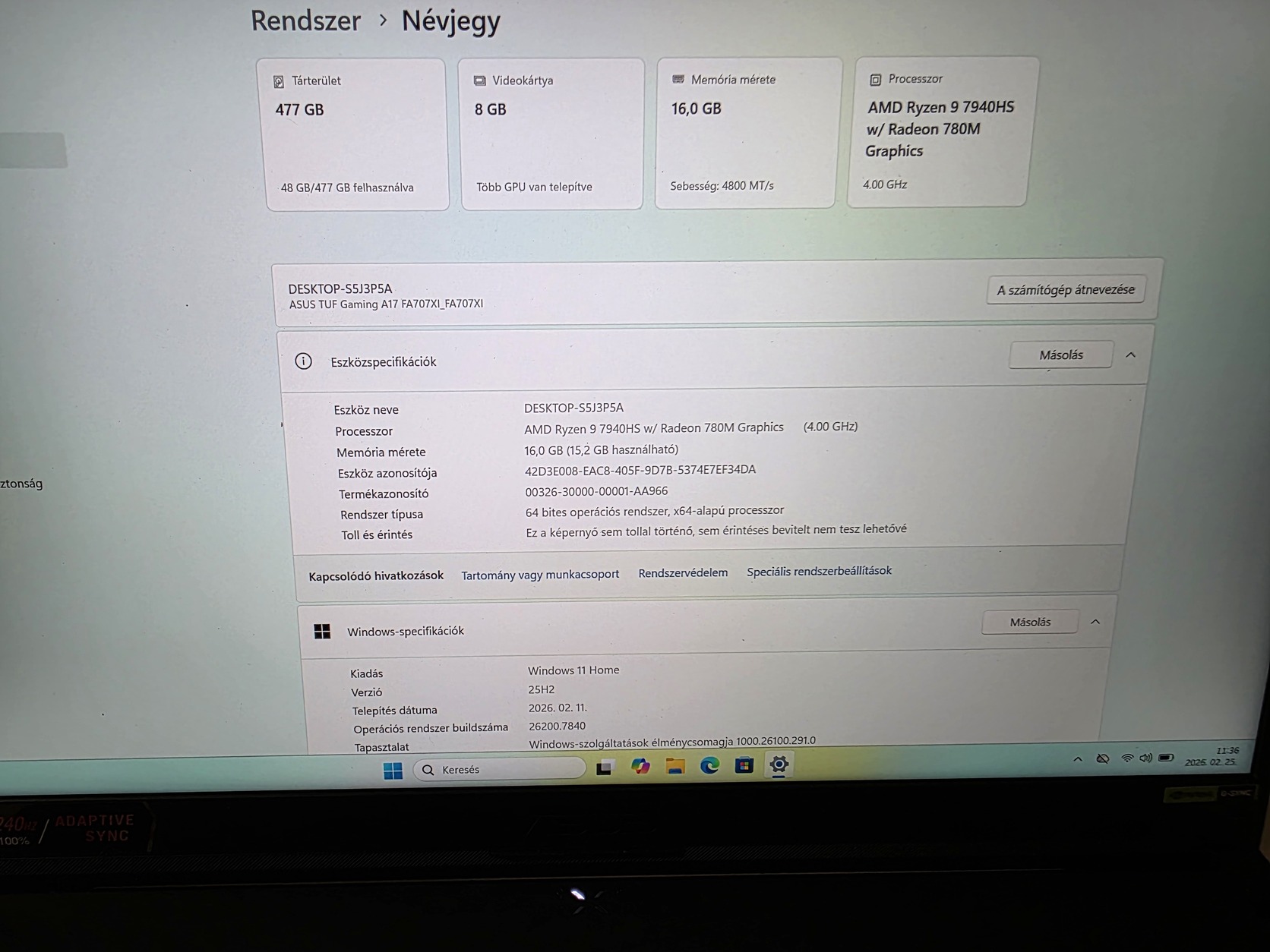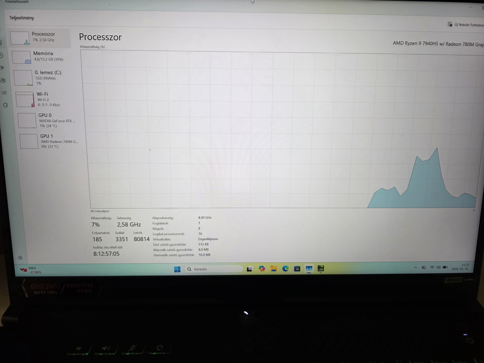 🧠 Processzor: AMD Ryzen 9 7940HS Radeon 780M Graphics – 8 mag/16 szál