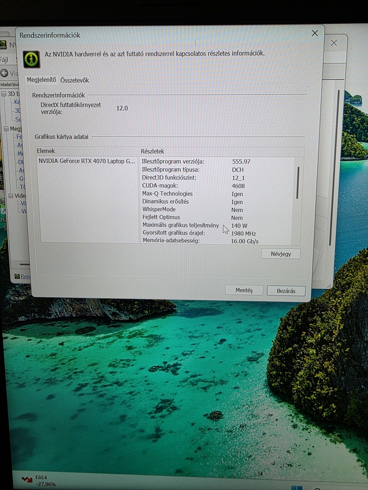 🎮 Videókártya: NVIDIA GeForce RTX 4070 (8 GB) 140w