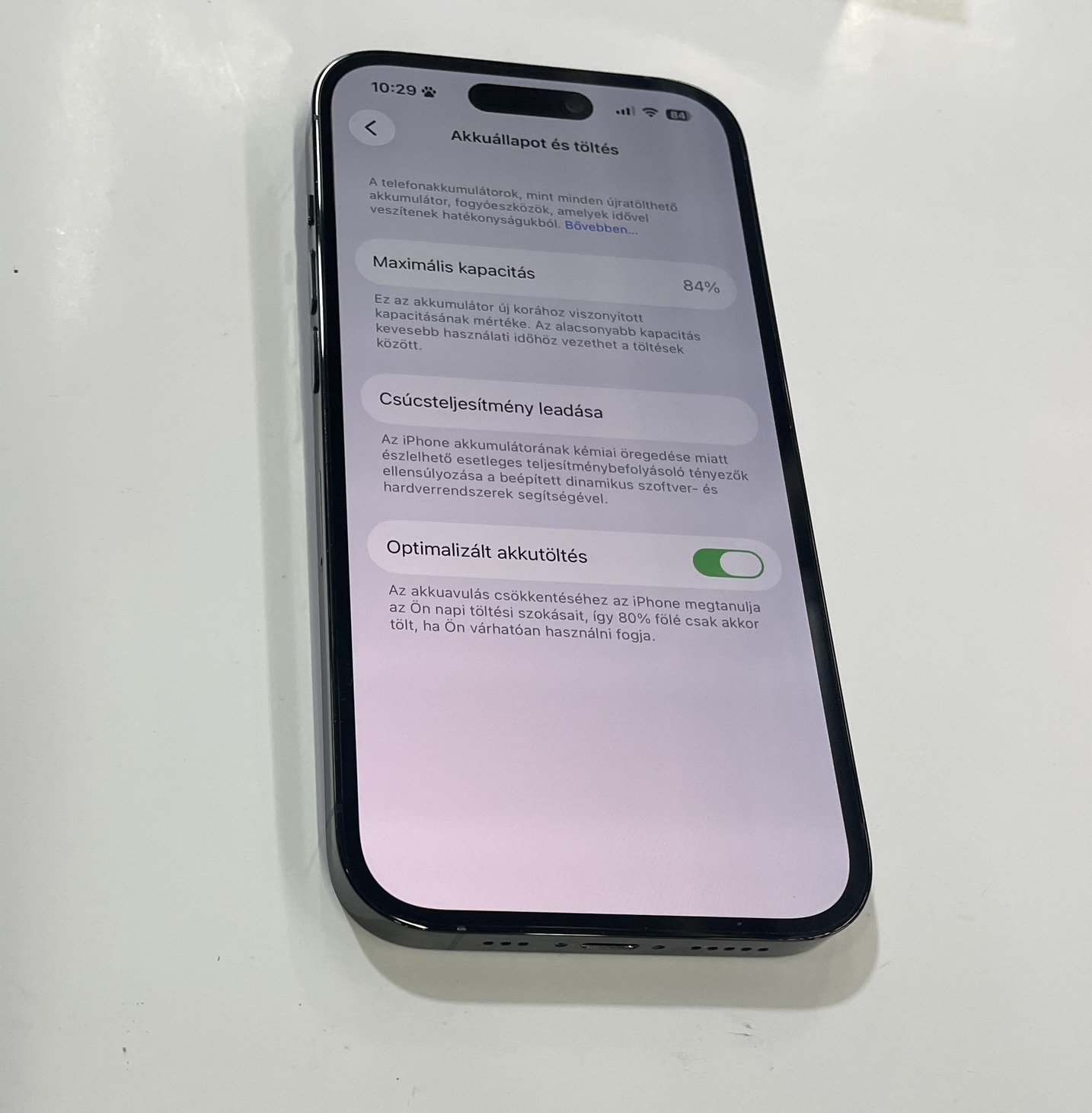 Akkumulátor 84%;