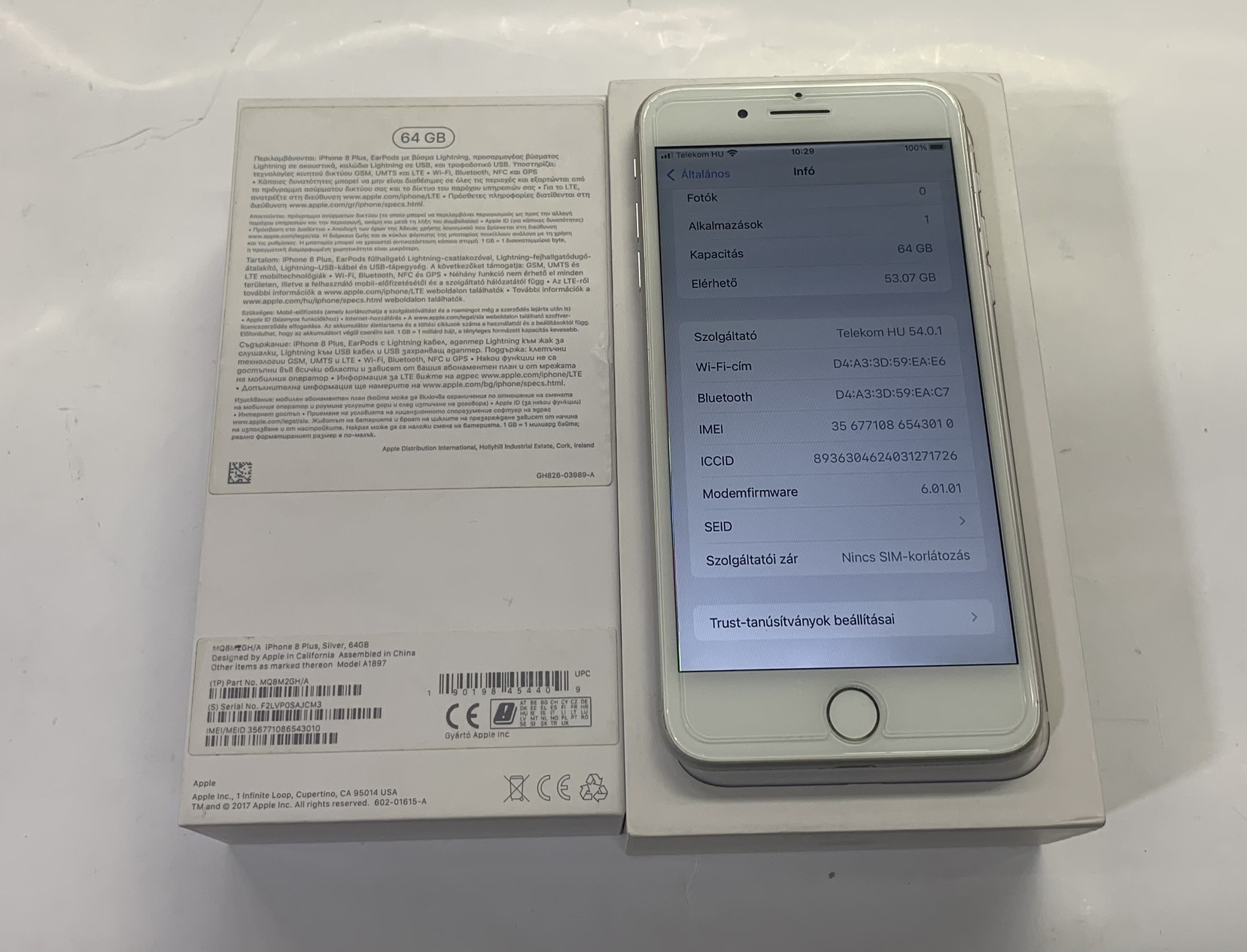 Dobozukkal Kártyafüggetlen Iphone 8 plus 64GB ,80% Akksi!