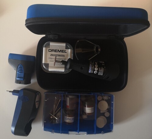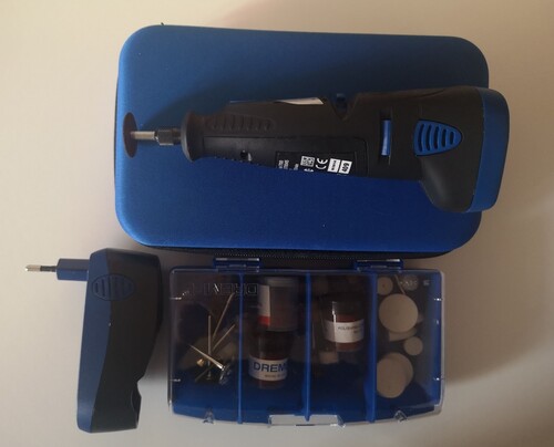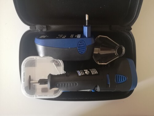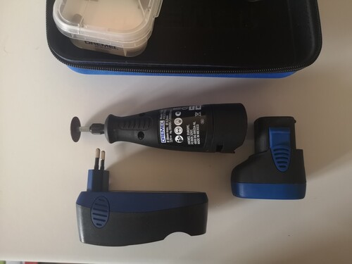 Eladó a képeken látható Dremel 7700 típusú vezeték nélküli multifunkciós szerszám. Ez a 7,2 V-os Ni-Cad akkumulátorral működő eszköz kétsebességes (10 000 és 20 000 fordulat/perc), kompakt és könnyű kialakításának köszönhetően ideális különféle hobbi és barkácsprojektekhez, mint például üveg- és fafaragás, csiszolás, polírozás vagy gravírozás.