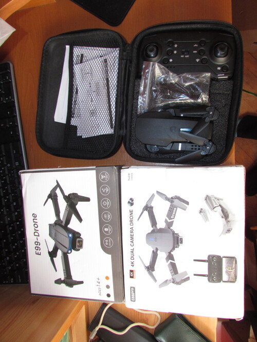 fekete drón hordozótáskával 4 db extra propeller, 4 db védőkeret, 1db akksi, 1 db töltő, 1db csavarhúzó, 1 db kontroller, beépített kamerás ( 1 kamera) hordozótáska nélkül 11500 ft / db (2 db a készleten) - ELKELT!!!