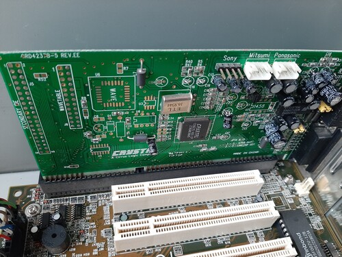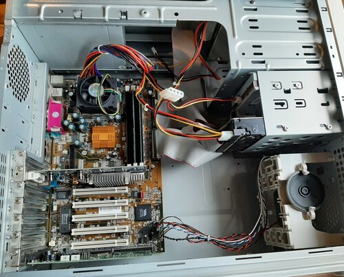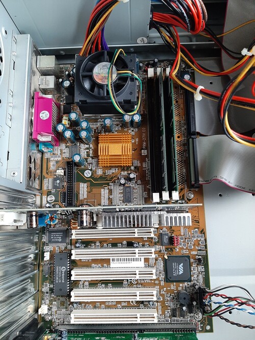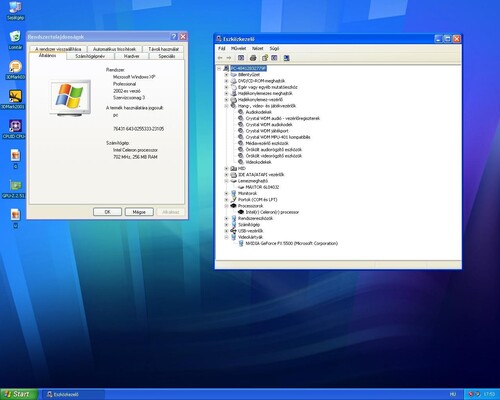256 MB SD memoriával és egy GEFORCE4 FX 5500-as agp-és kártyával, Crystal CS4235 ISA hangkártyával.