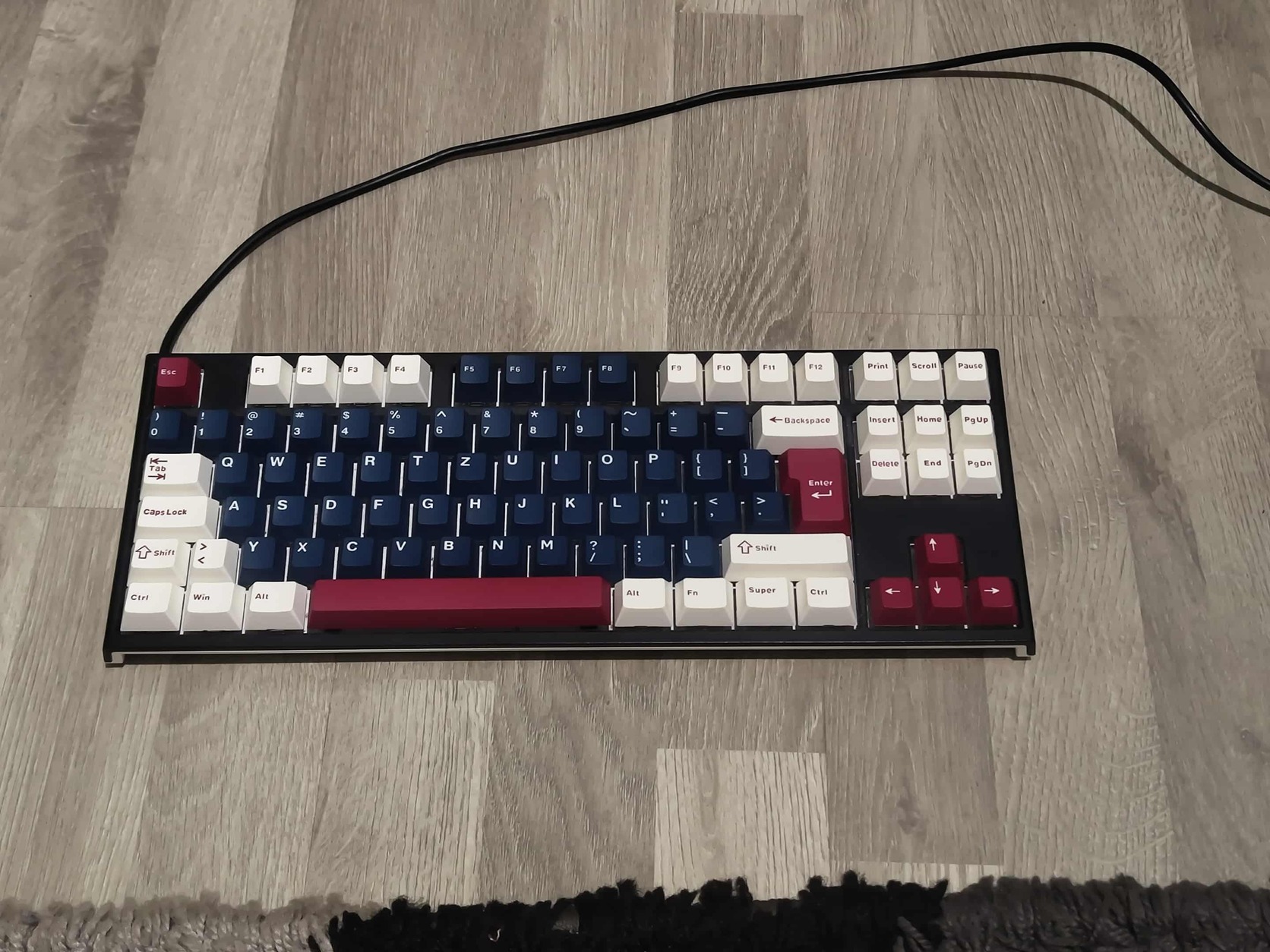 Eladó Ducky One 2 TKL billentyűzet mágneses billentyűre váltés miatt. Az alján a fém ducky logón még rajta a gyári fólia. Az eredeti keycap-ek lekoptak úgy hogy cserélve lettek erre a kék fehér kombóra.