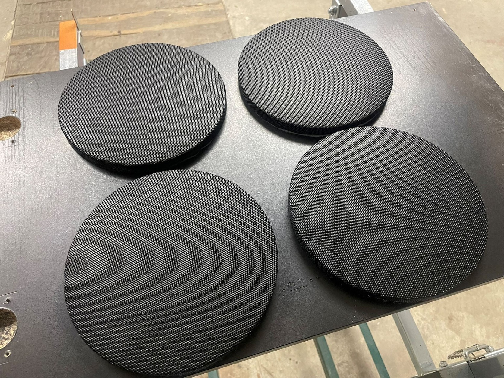 A befoglaló műanyag kereteken és a rácsok peremén egy-egy helyen, enyhe benyomódások látszanak.