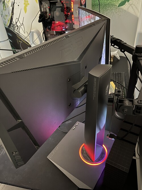 Használat: fő monitorként használtam 8 évig Overwatch játékhoz FHD felbontásban 180Hz-en, kezdetben a saját állványán, majd egy Gembird MA-D2-01 Adjustable Desk 2-Display Mounting Arm monitortartó állványon, majd egy kb. fél éve másodlagos, streaming monitorként használtam.