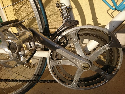 Egyedi építésű fehér-kék retro bringa, profi versenybringaépítő munkája, nem én tákoltam.