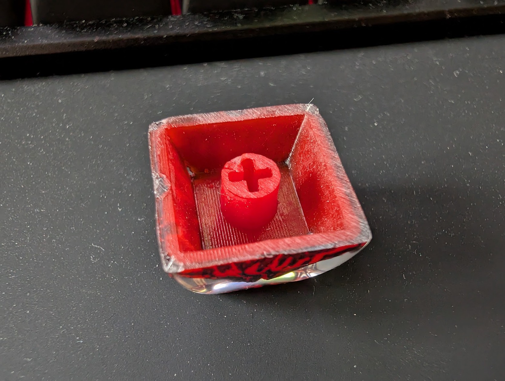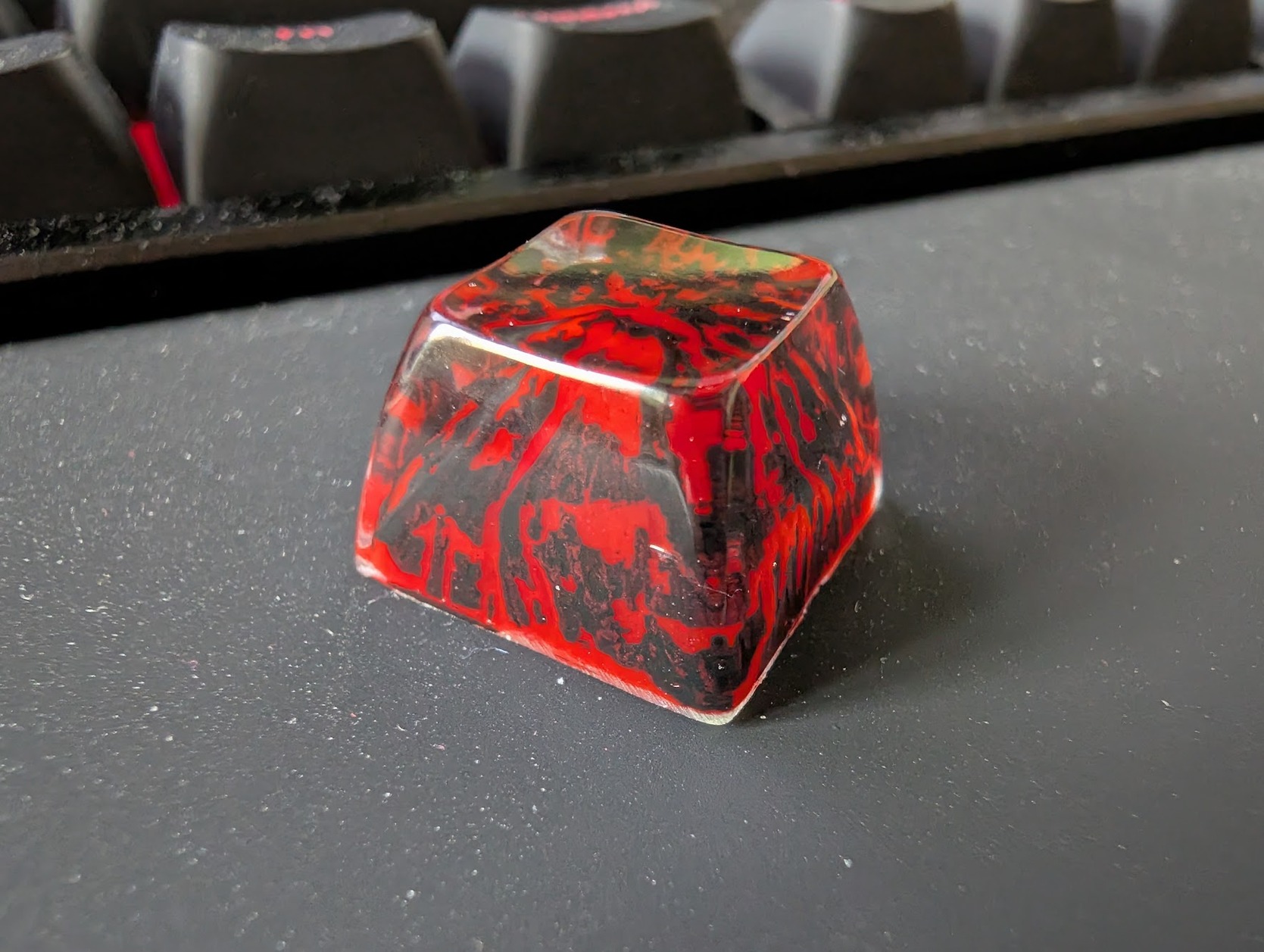A fotók szuper közeli, makró shot-ok, távolról nem is látszanak az apró szépséghibák, de nem fogom tagadni, hogy nem egy Drop Artisan / Dwarf Factory Keycap minőség, cserébe az ára is tizede azoknak.