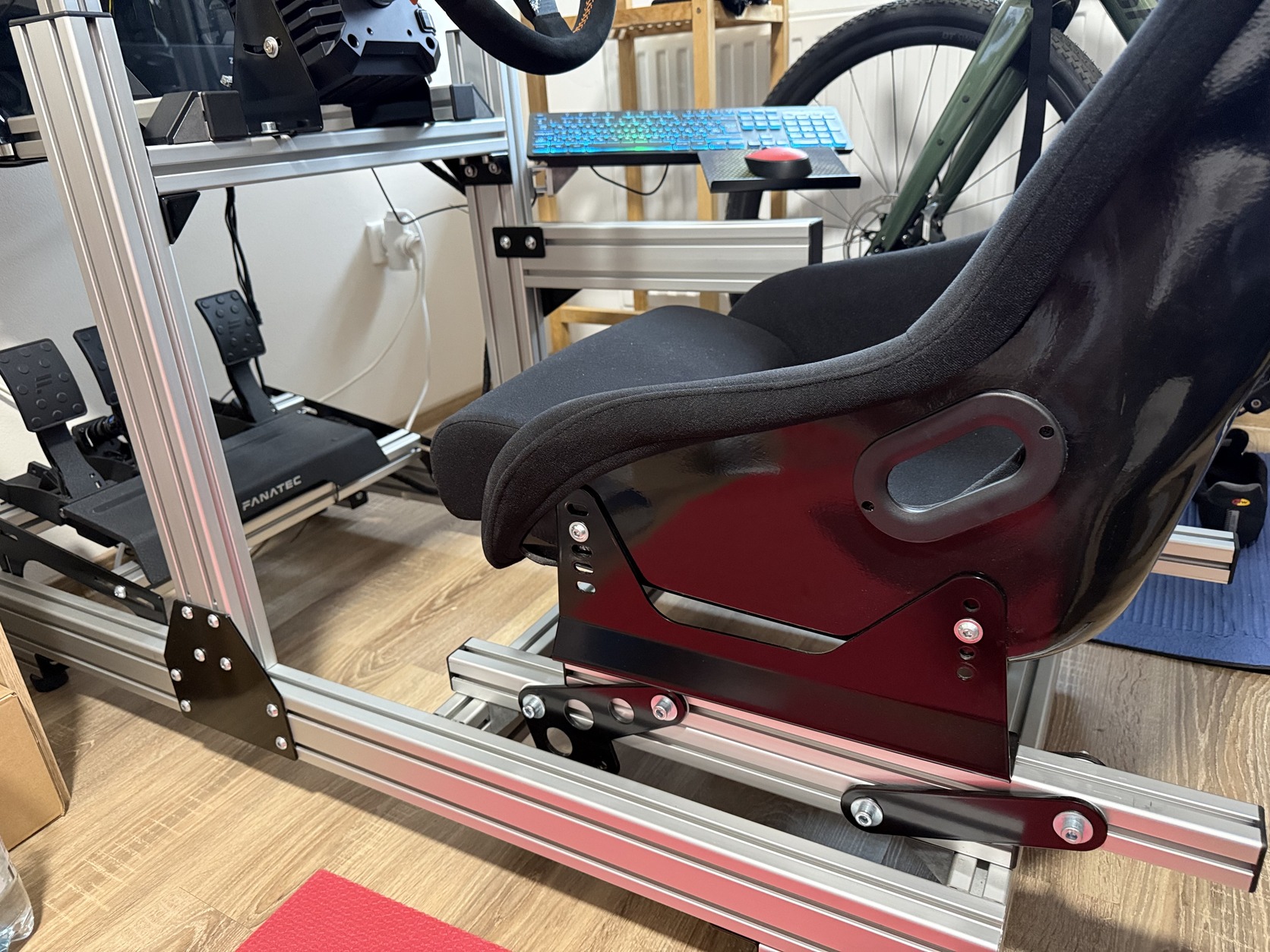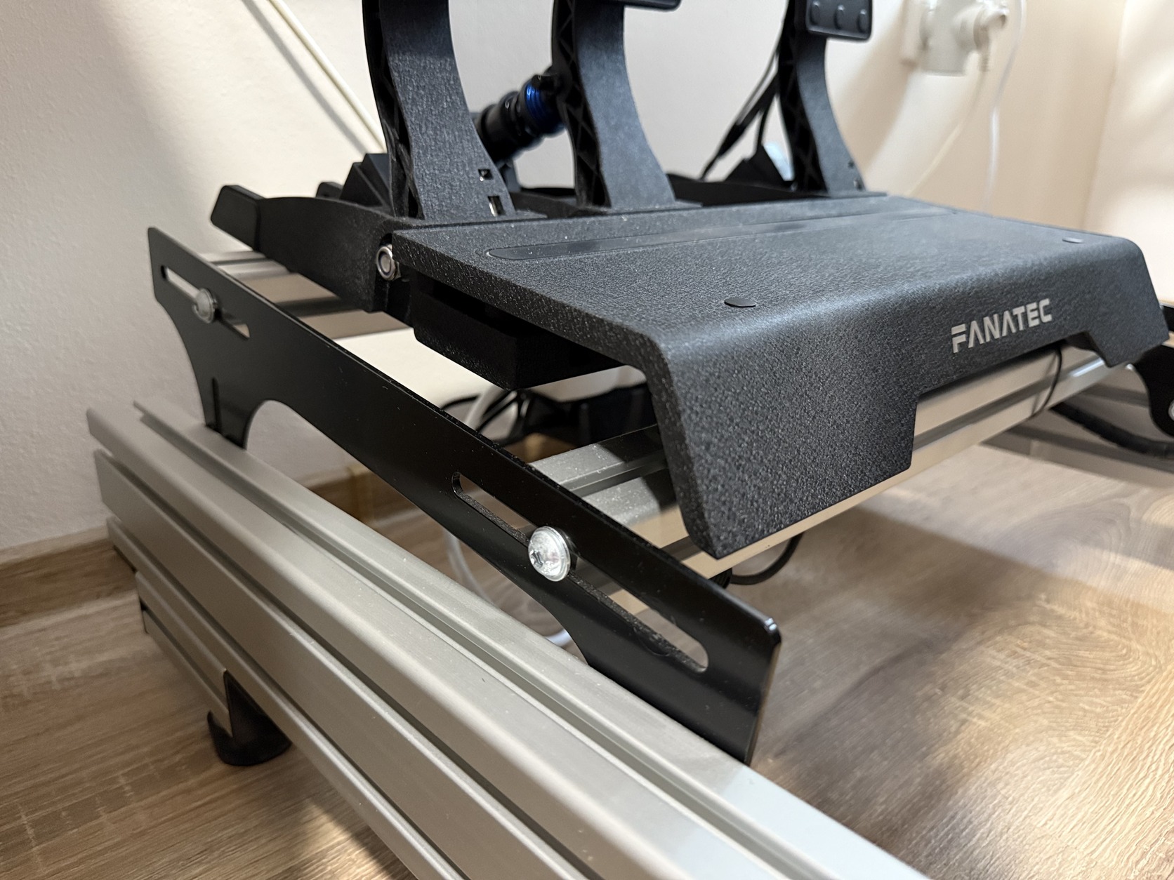 - bázistartó, szögben állítható, jelenleg Fanatec bázisokhoz, igény szerint alsó rögzítésűre cserélem ( Moza, Simagic, stb. )