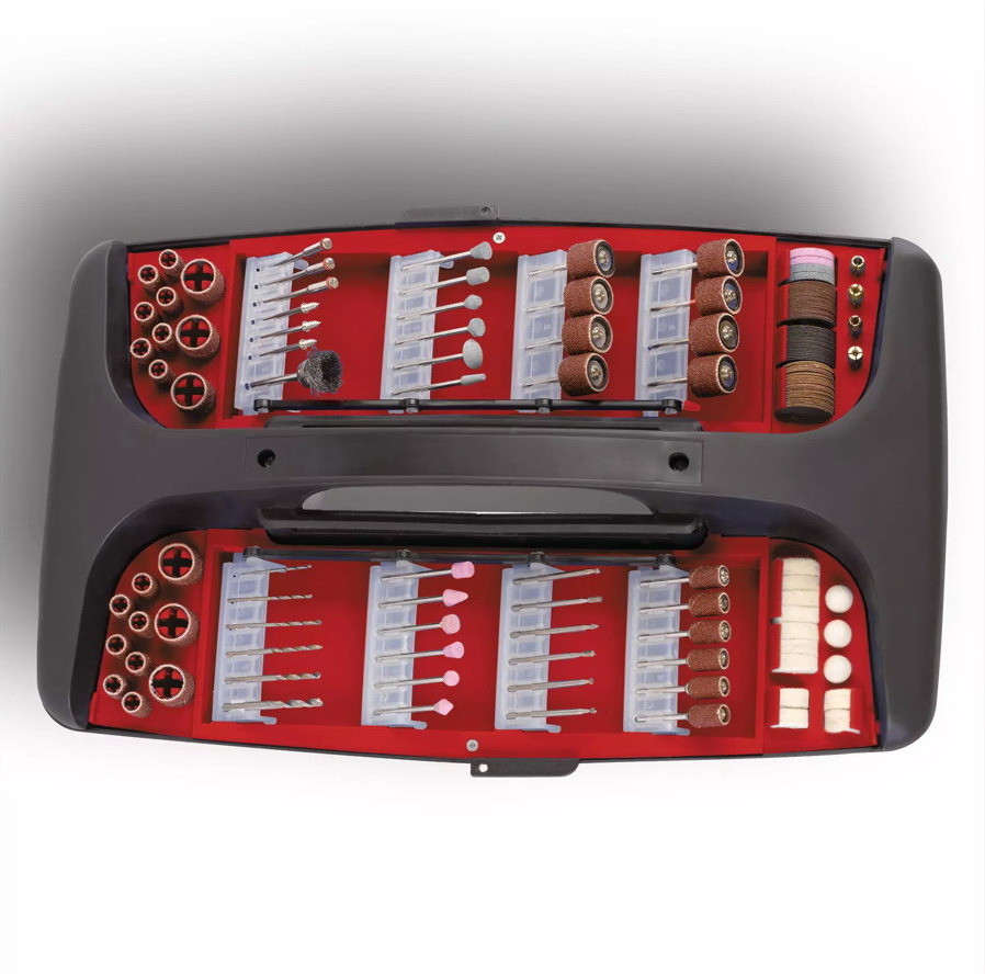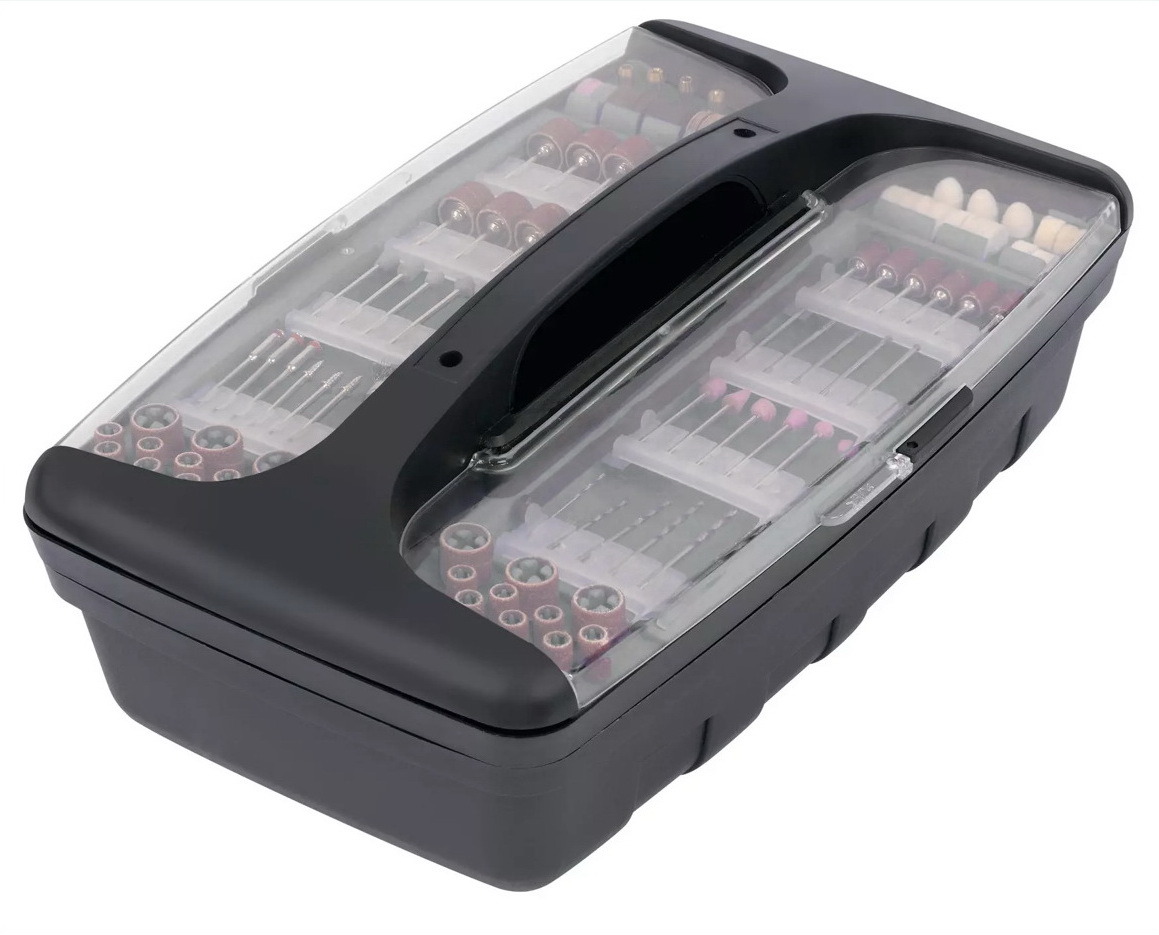 Állványa is van, rugalmas tengelye, így nem kell kézben tartani a gépet, mikor kis, finom munkát végzünk. Rengetek tartozék jár hozzá - 189 részes tartozékkészlet, mindene hiánytalanul meg van.